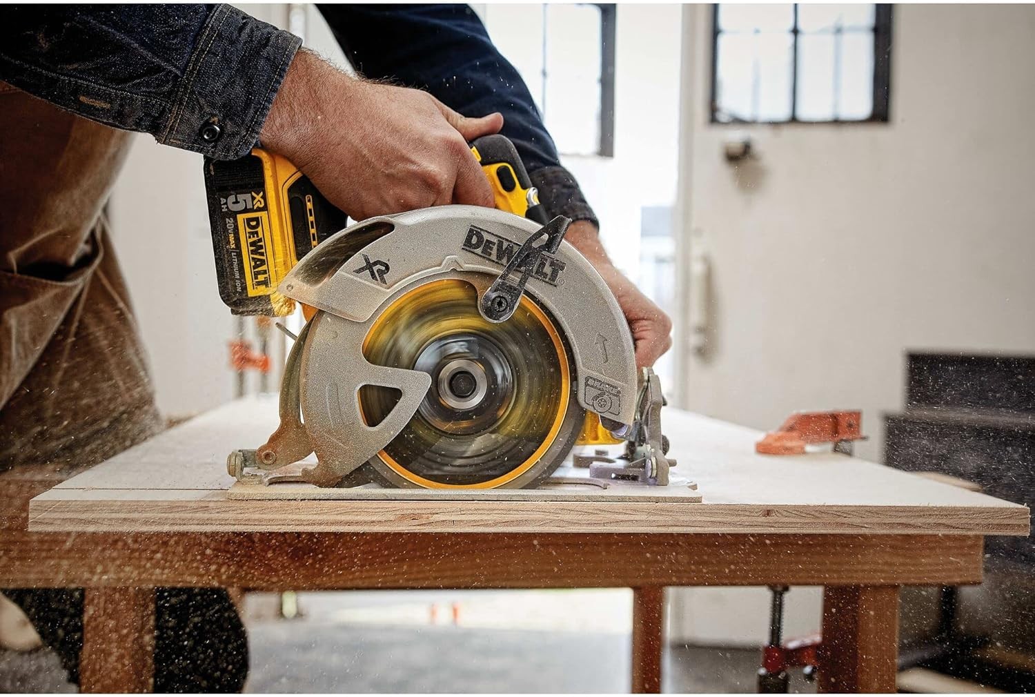 Power - Brushless motor of DEWALT 7 1/4 circular saw provides 5500rpm and maintains speed under load