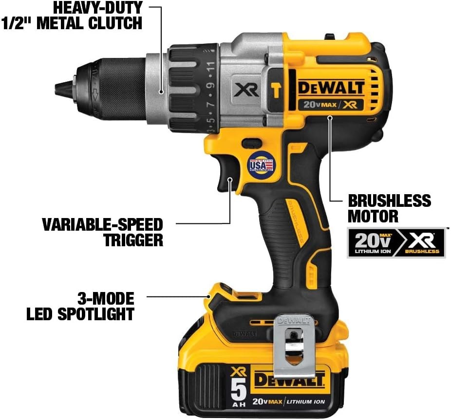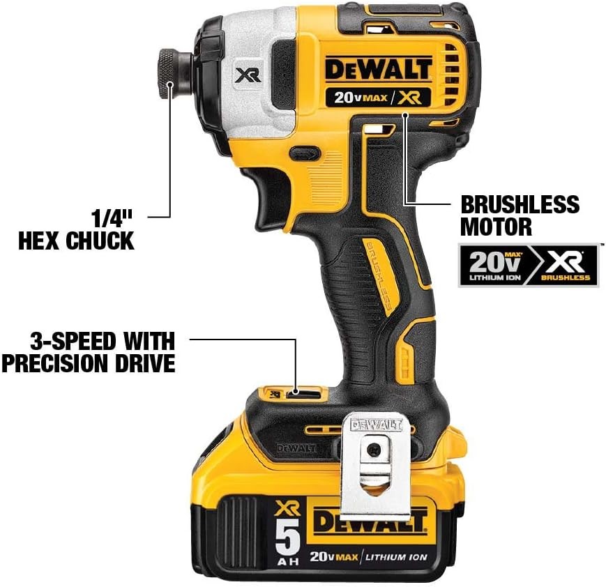 • DCD996 in the cordless tools combo kit has a DEWALT-built high power, high efficiency brushless motor that delivers up to 75% more runtime vs. 18V NiCad brushed motors.