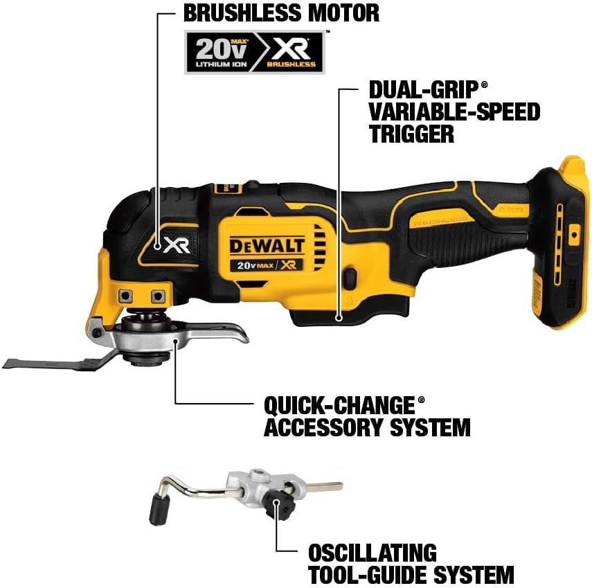 • DCS355 has a Quick-Change accessory system that allows blades and attachments to be changed quickly without wrenches