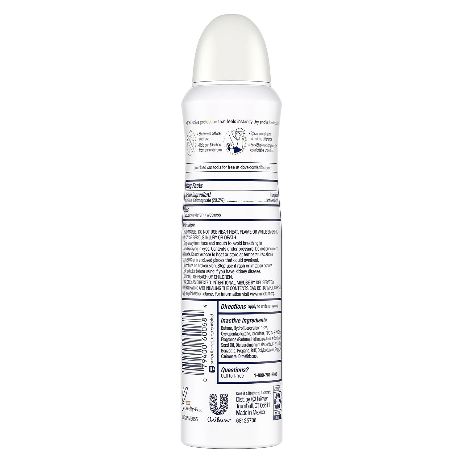 CERTIFIED CRUELTY-FREE: Globally, Dove does not test on animals, including for deodorants, and is Certified Cruelty-Free by PETA.