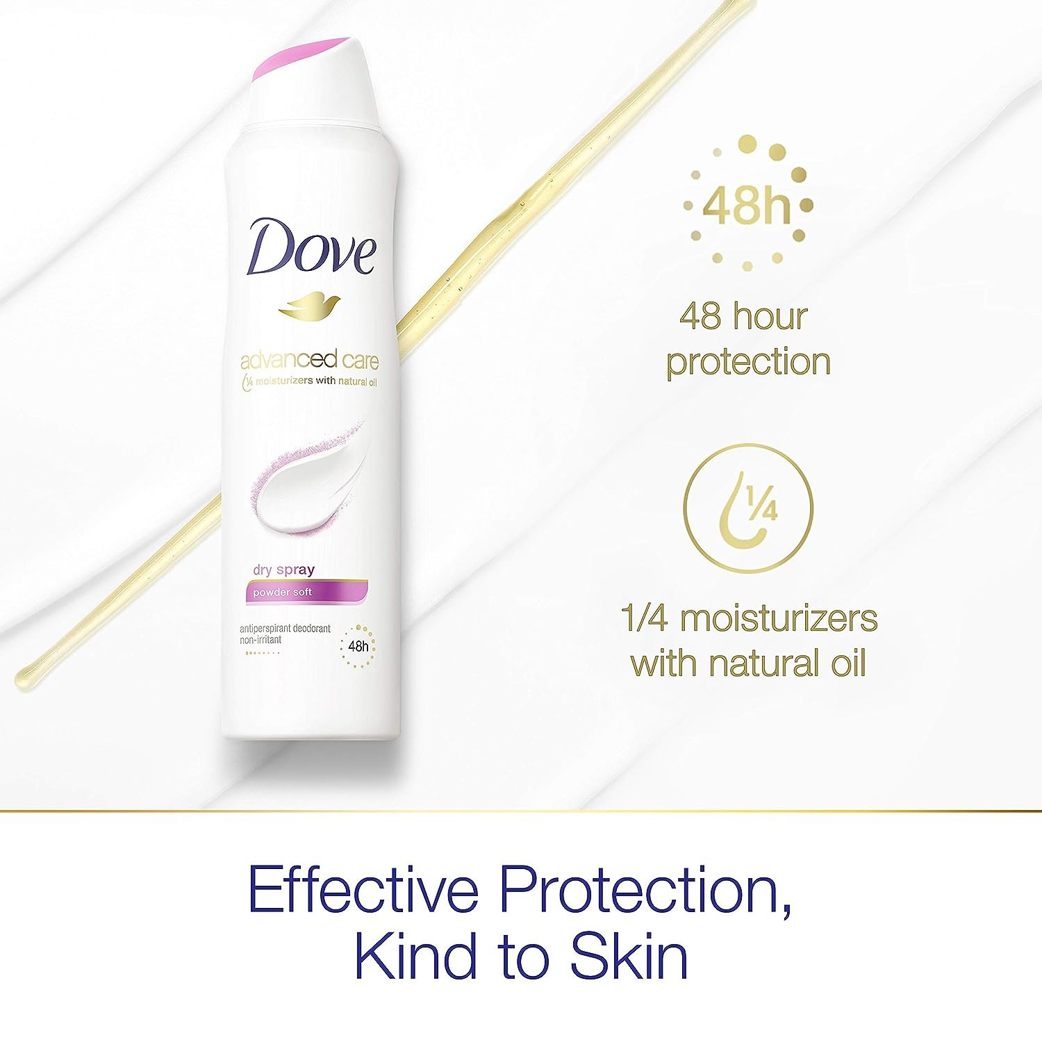 Dove Advanced Care Dry Spray Antiperspirant Deodorant for Women, Powder Soft, for 48 Hour Protection And Soft And Comfortable Underarms, 3.8 Ounce (Pack of 12)
