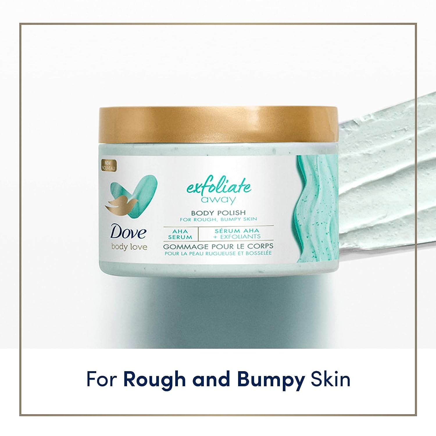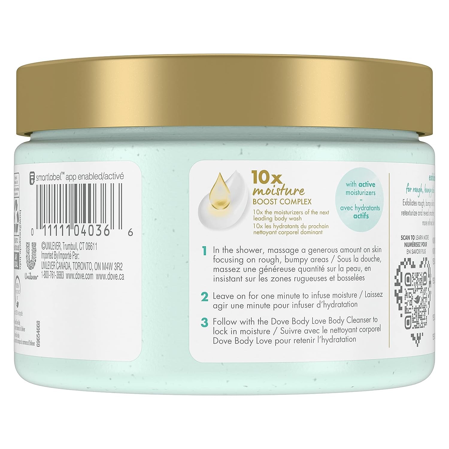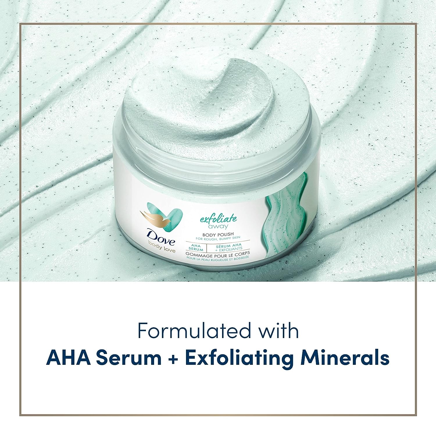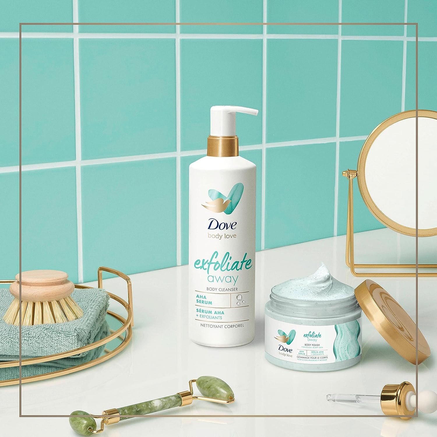 HOW TO USE: Massage a generous amount of this body polish on skin and leave on for one minute to infuse moisture, then rinse, before following with the Dove Body Love Cleanser to lock in moisture