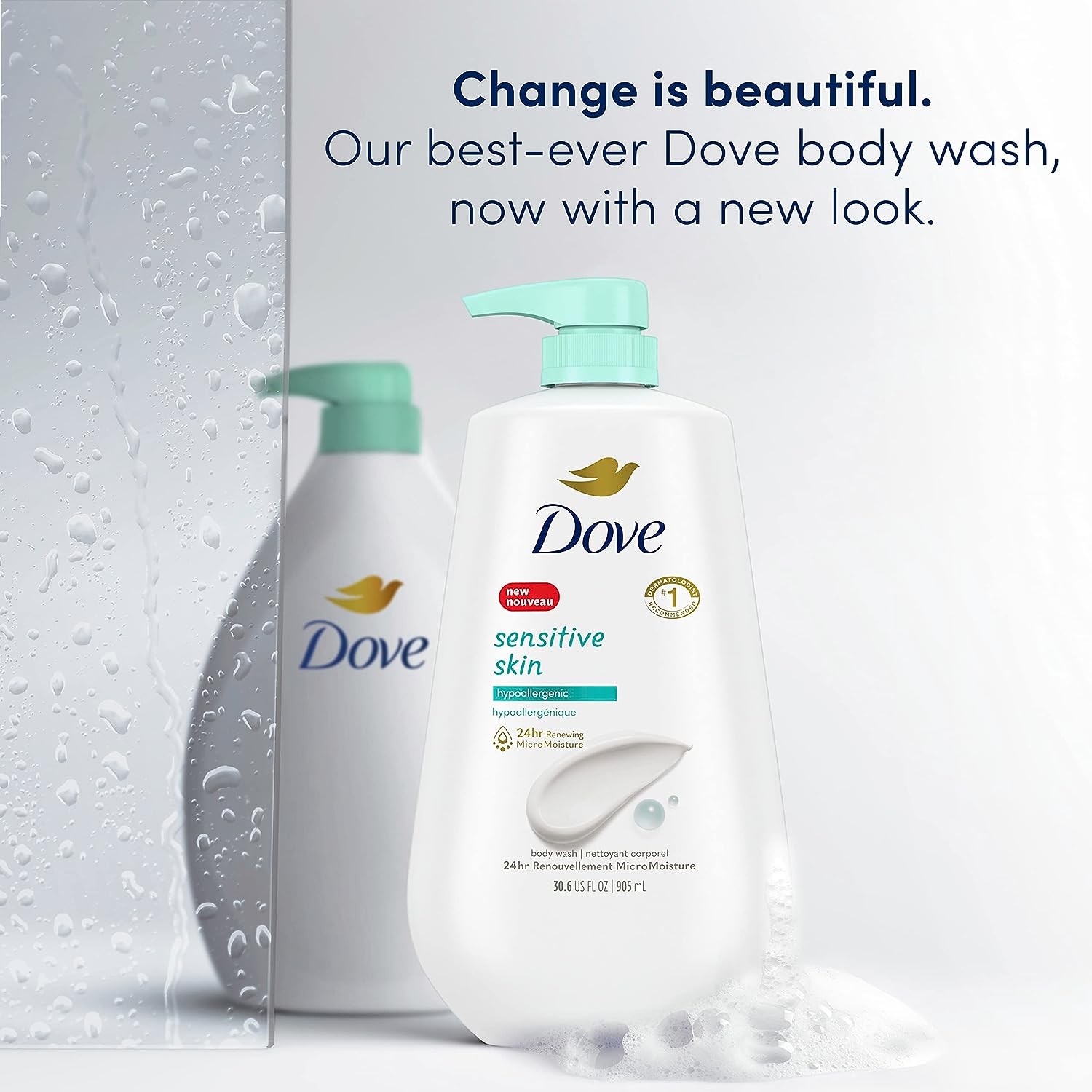 Dove Body Wash with Pump Sensitive Skin Hypoallergenic, Paraben-Free, Sulfate-Free, Cruelty-Free, Moisturizing Skin Cleanser Effectively Washes Away Bacteria While Nourishing Skin, 30.6 Oz (Pack of 3)