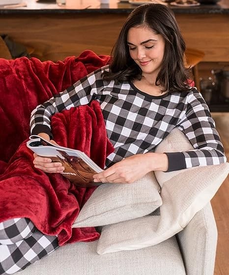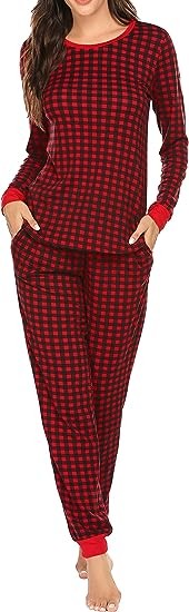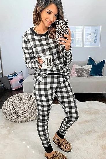 【Plaid Pajama set】Long sleepwear set all designed in eye-catching classic plaid to create women’s soft and cozy pj set,round neck & long sleeve & elasticity is great for women to sleepwear/lounge wear/underwear