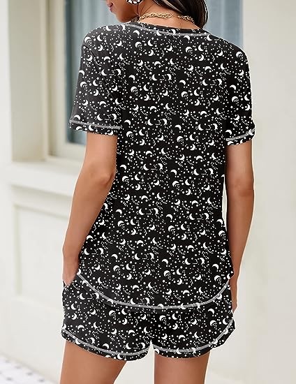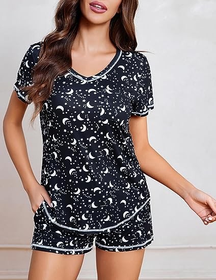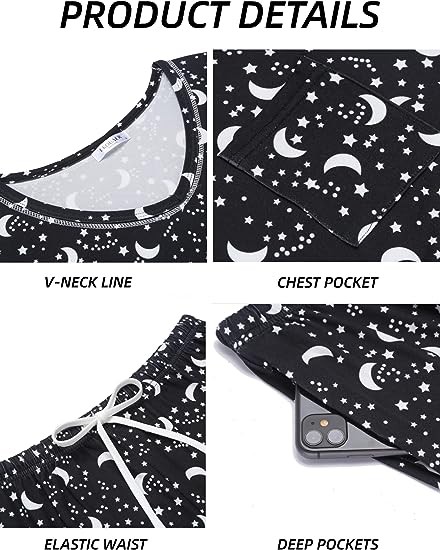 Design: The pajama top features classic design of chest pocket and V neck. The pajama shorts with a drawstring and pockets suits any body shape. Perfect fit, womens loungewear sets, which will not embarrassed when your friend visiting suddenly. Contemporary & fashion pajamas for women and teens.