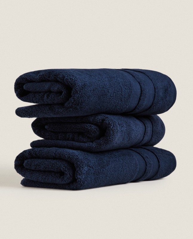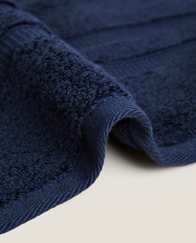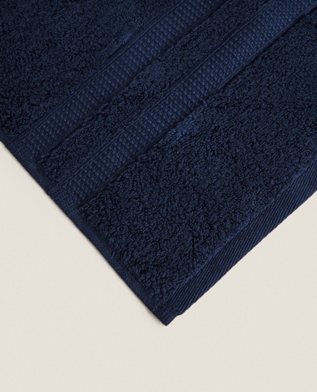 Cotton towel with double border. Extra soft, with excellent absorption power. Dries quickly.
