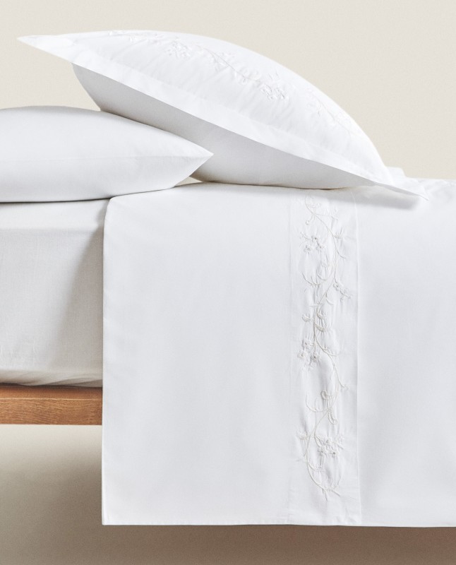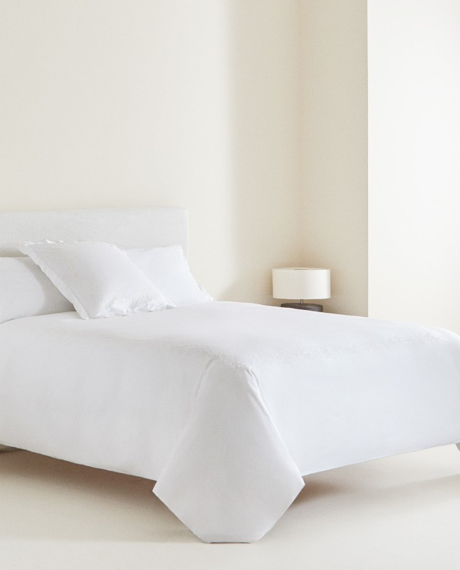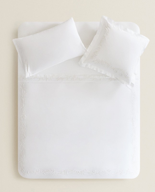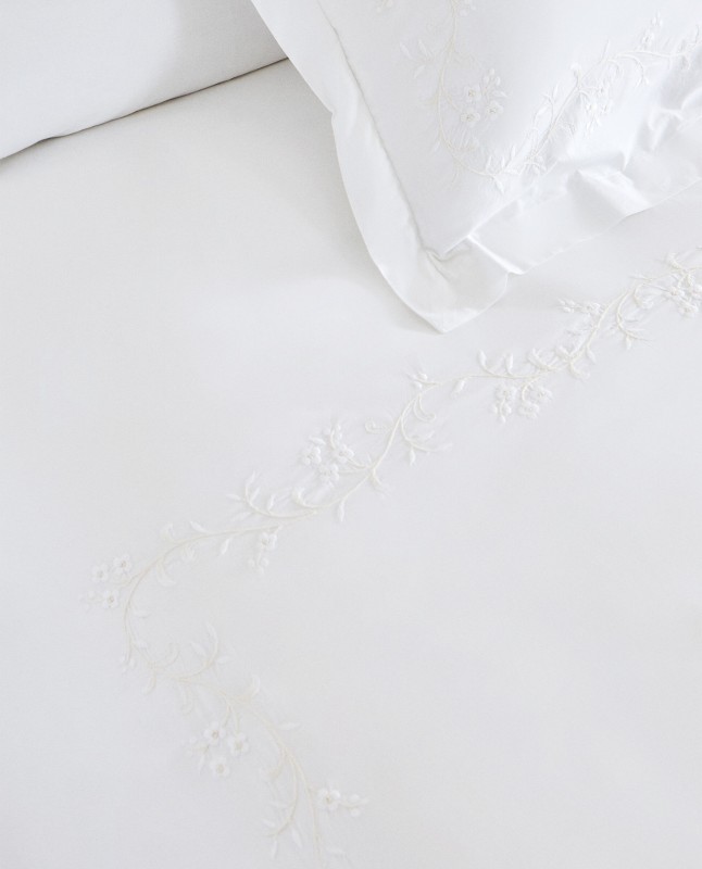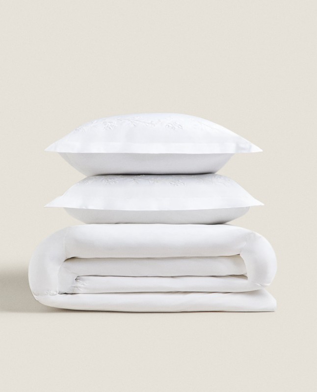 Duvet cover in 200-thread-count cotton percale with a multicolored floral design.