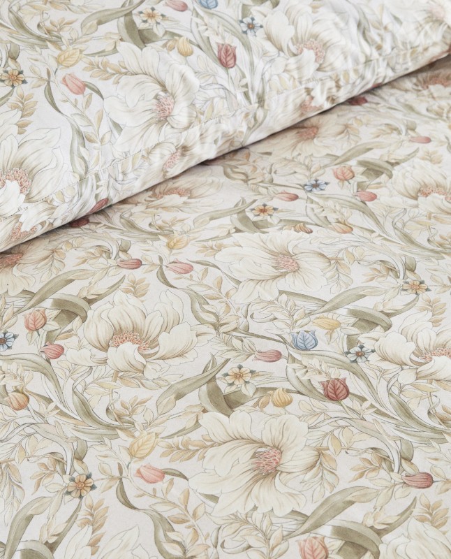 Duvet cover in 200-thread-count percale with a multicolored floral print.