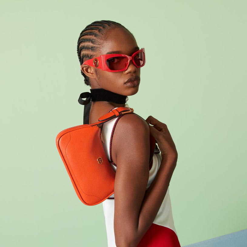 The Pre-Fall 2023 collection captures the essence of Gucci. Colors, prints, and emblems appear consistently across time-honored silhouettes, demonstrating the House's ability to reinvent signature pieces season after season. This Aphrodite shoulder bag is presented in a pop color, complemented with the unmistakable Double G hardware.