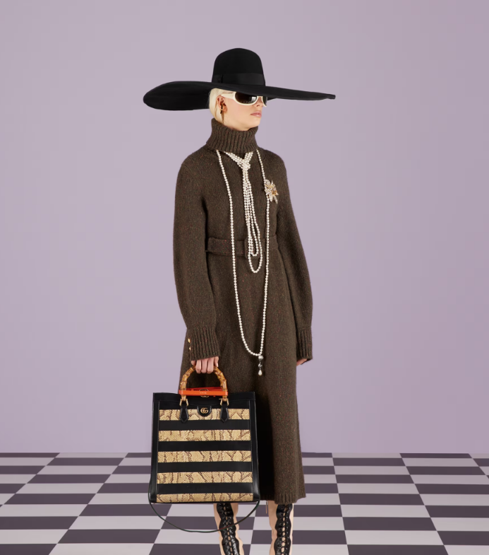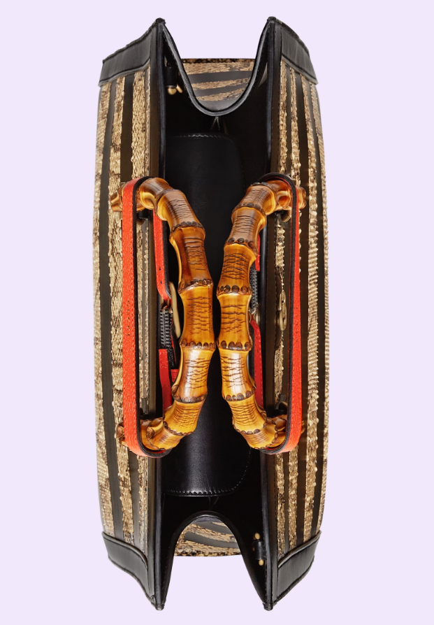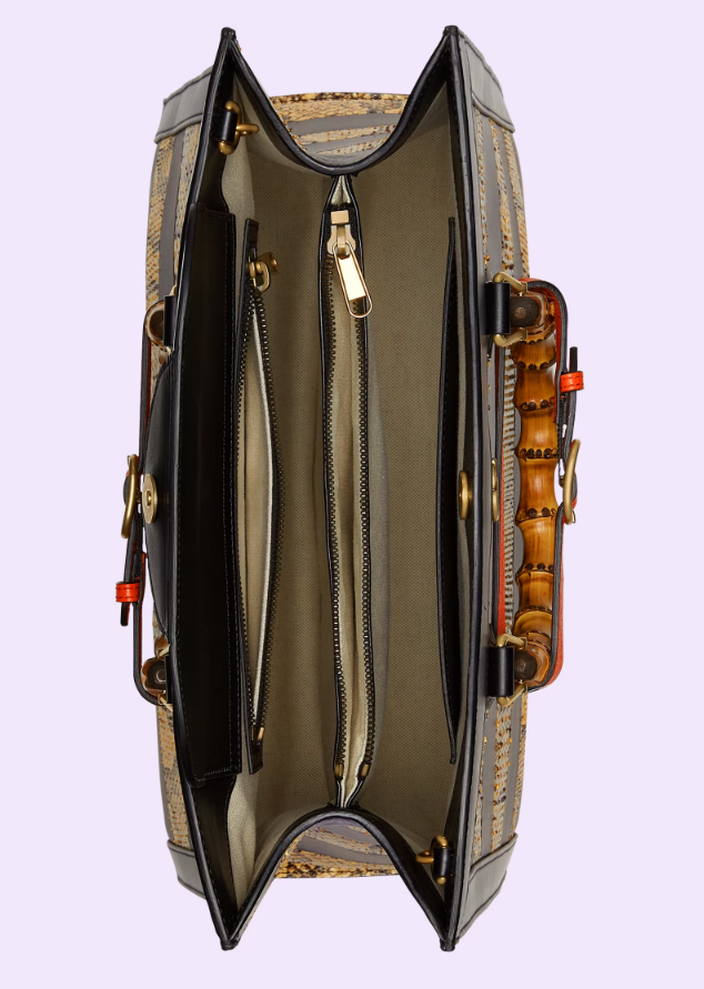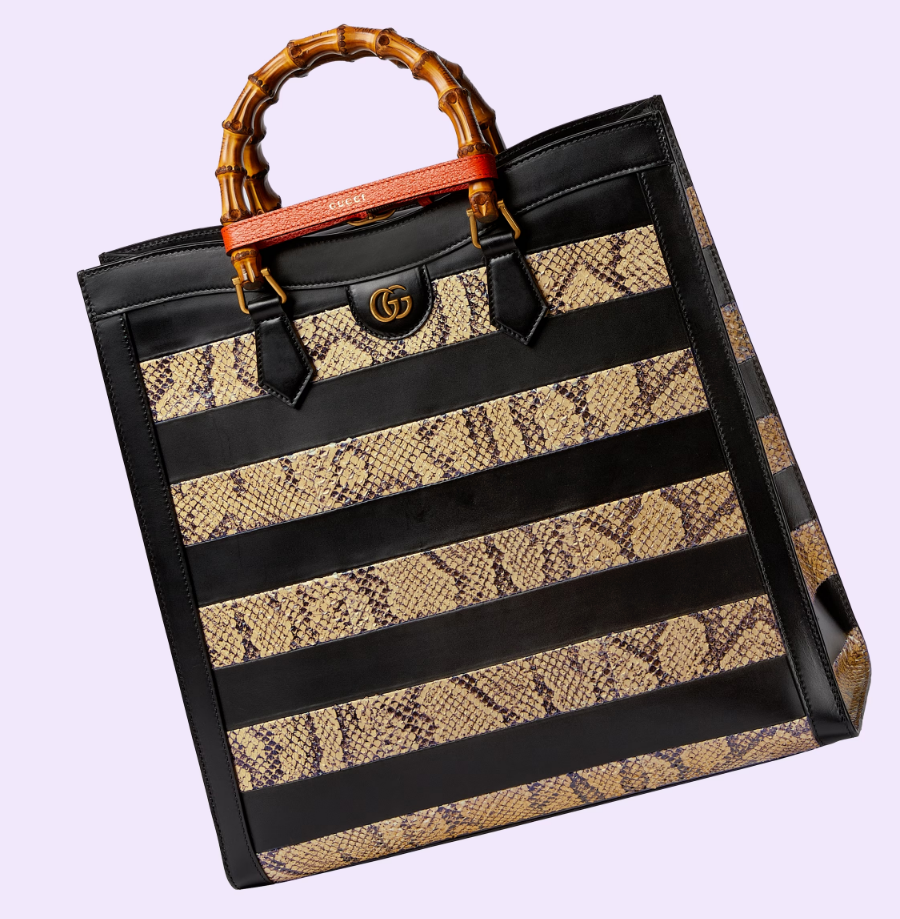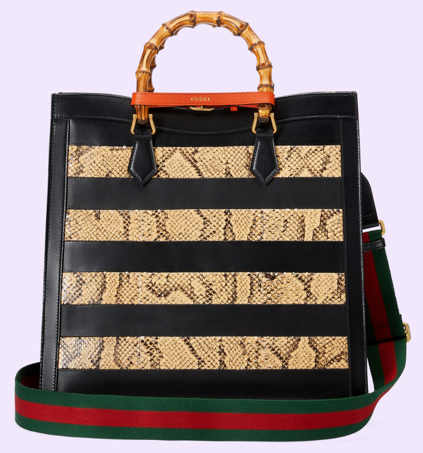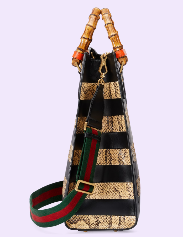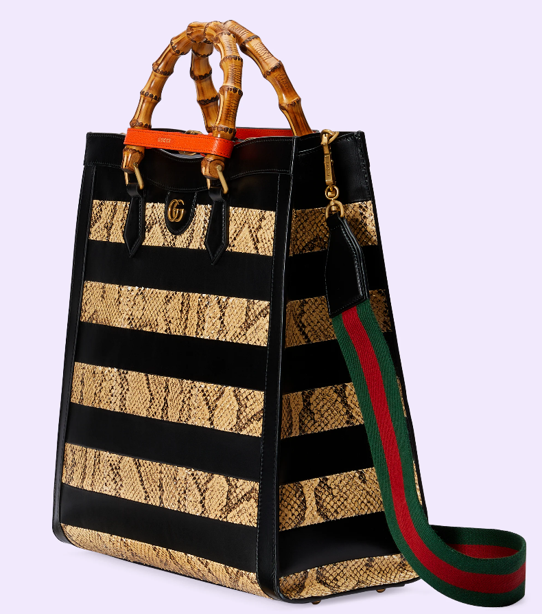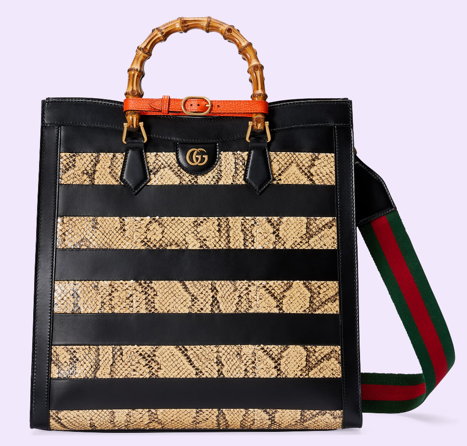 Continually evolving as part of Gucci's travel selection, the Gucci Diana features in the latest collection as a contemporary accessory with renewed design details and in precious variations. The elegant design of this large python tote bag combines recognizable archival details of the House; bamboo handles and Double G hardware.