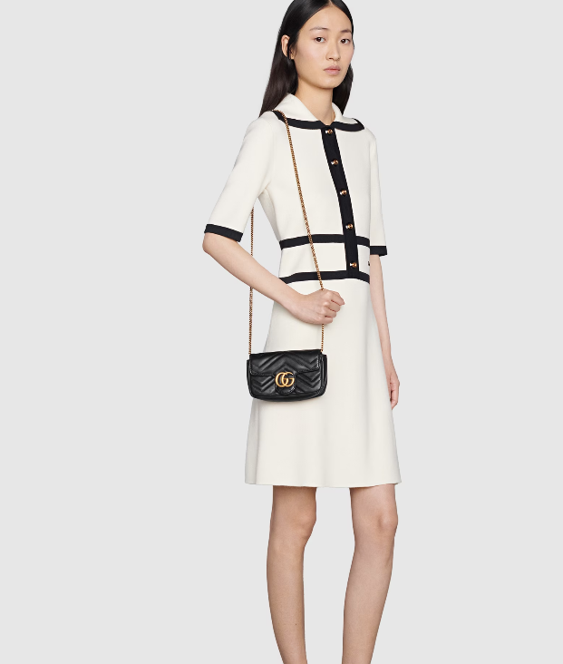 The GG Marmont mini bag has a key ring that can be used to attach it to a separate larger bag. It has a softly structured shape and a flap closure with Double G hardware. The hardware is inspired by an archival design from the '70s. Made in matelassé chevron leather.