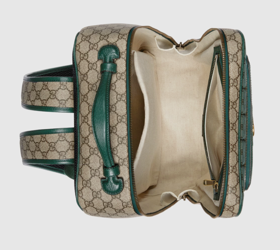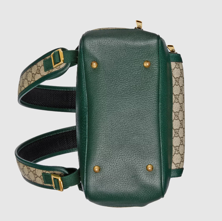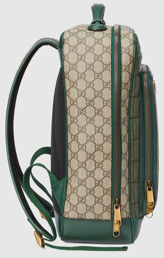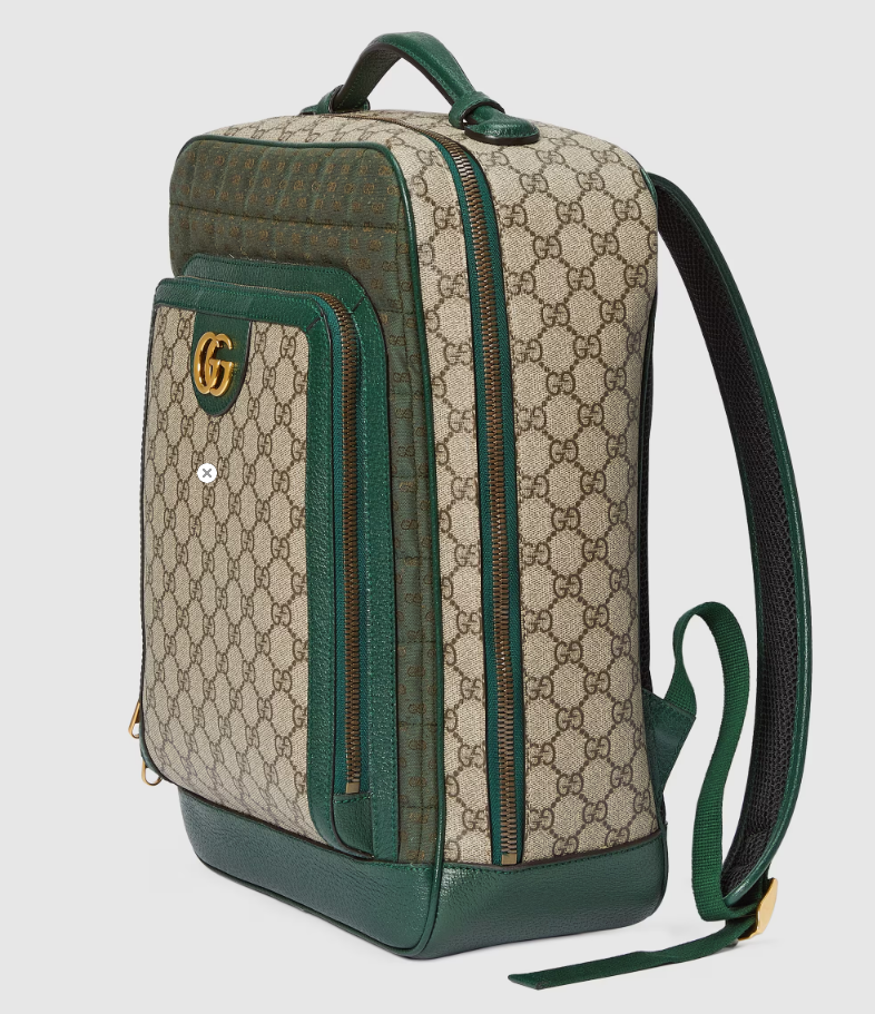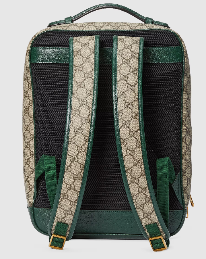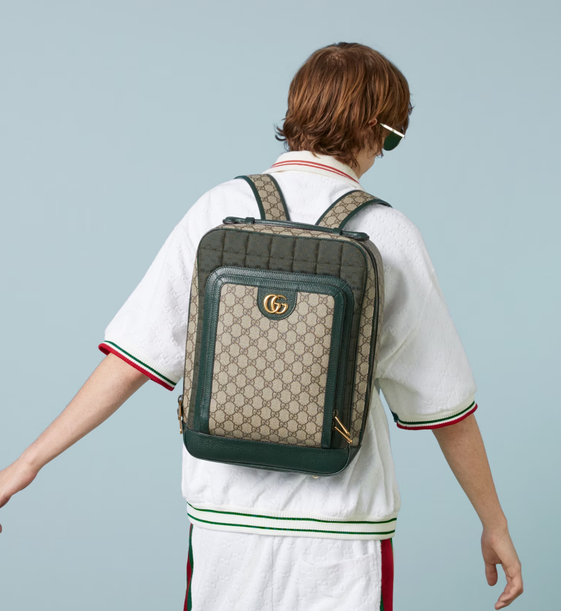 Gucci men's bags push the boundaries of design, constantly reimagining signature travel pieces in unique ways. This backpack blends the historic GG Supreme canvas with a green quilted mini GG canvas, resulting in a modern accessory with vintage appeal.