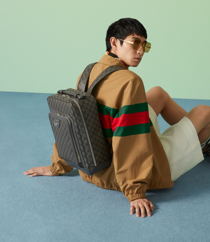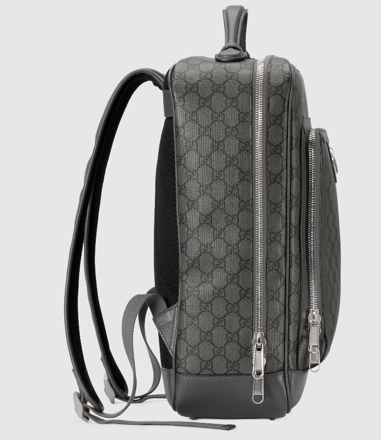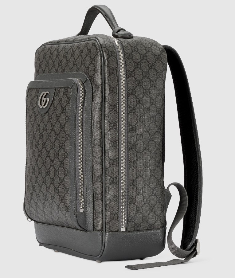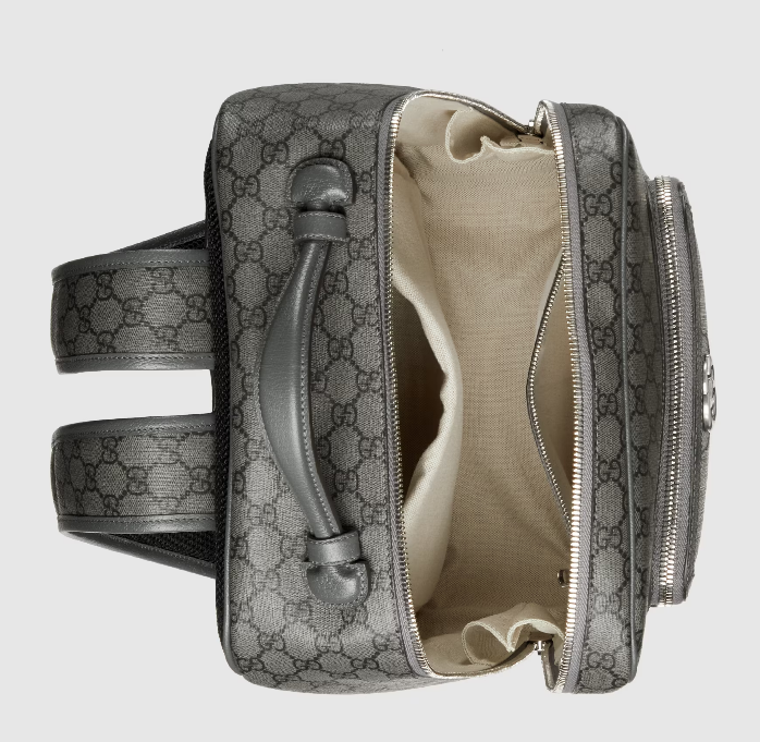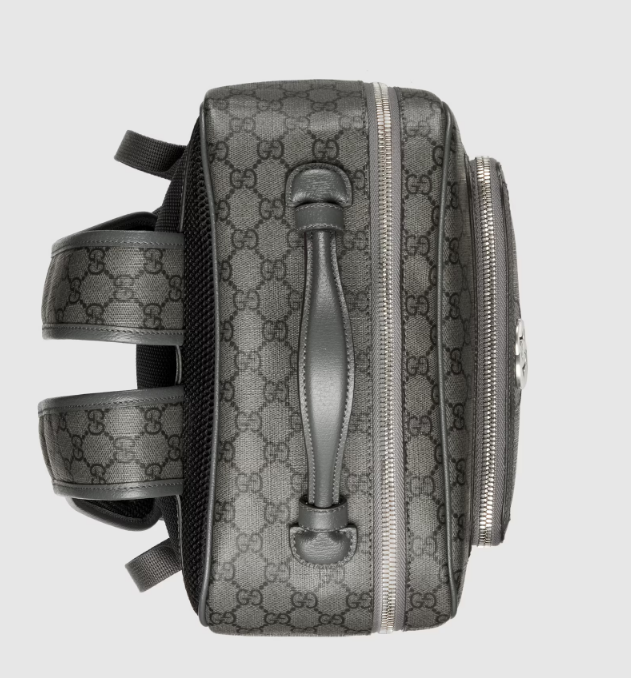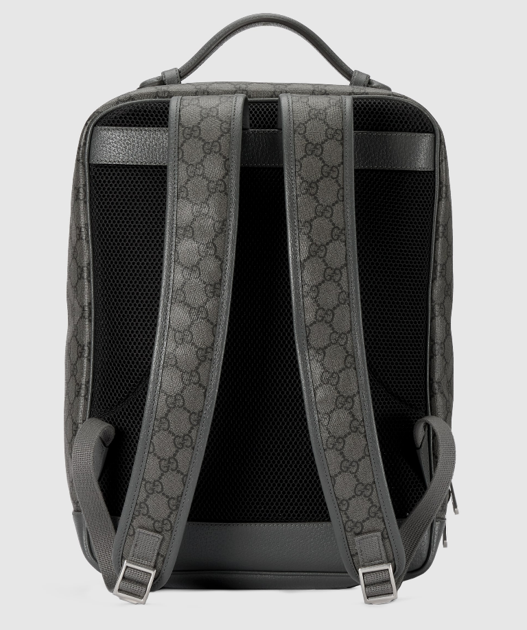 Mirroring the material's historic origins, GG Supreme is introduced in a modern mix of grey and black for Pre-Fall 2023. The canvas has come to the front of each collection decade after decade to become a hallmark of the House. Here, this medium Ophidia backpack is defined by a palladium version of the Double G hardware and a front pocket..