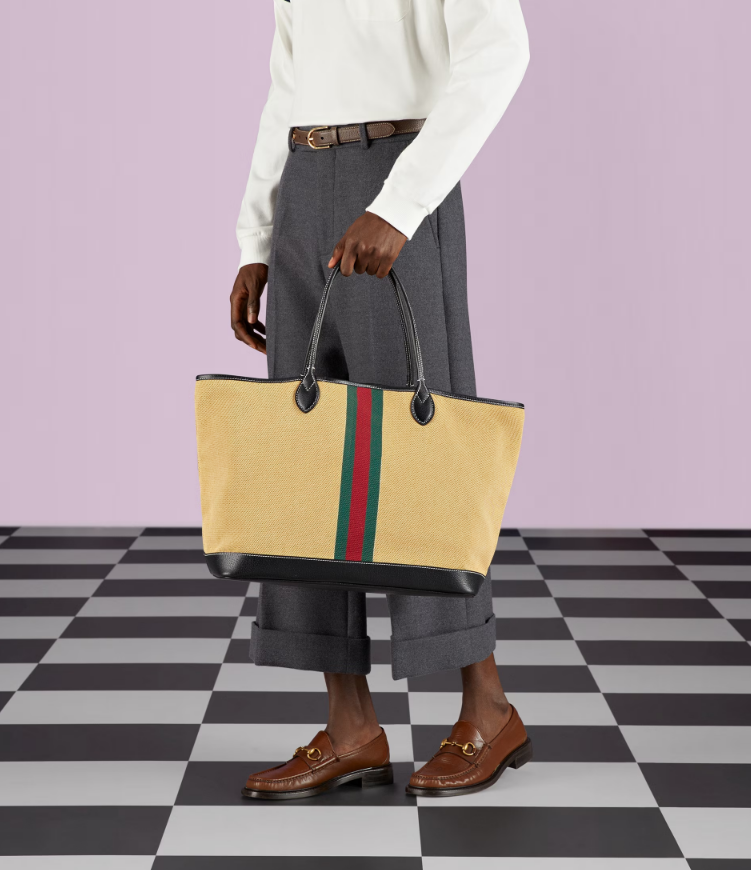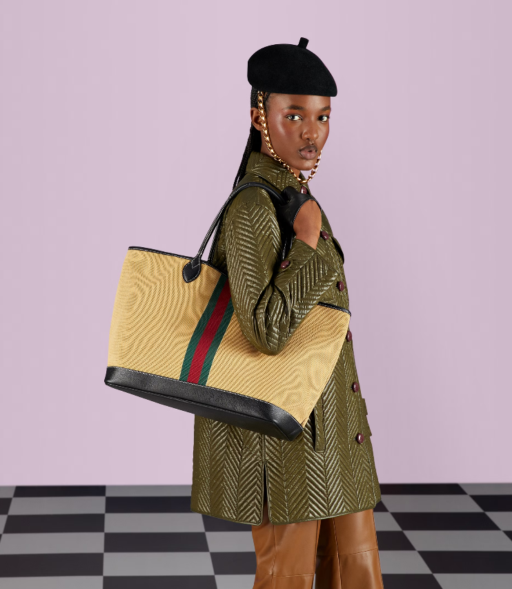 The green and red Web stripe is one of the House's most recognizable elements. The Ophidia line continues to evolve as part of the Cruise 2023 Gucci Cosmogonie collection, reinventing classic shapes with new textures and combinations, resulting in a timeless and refined offering.