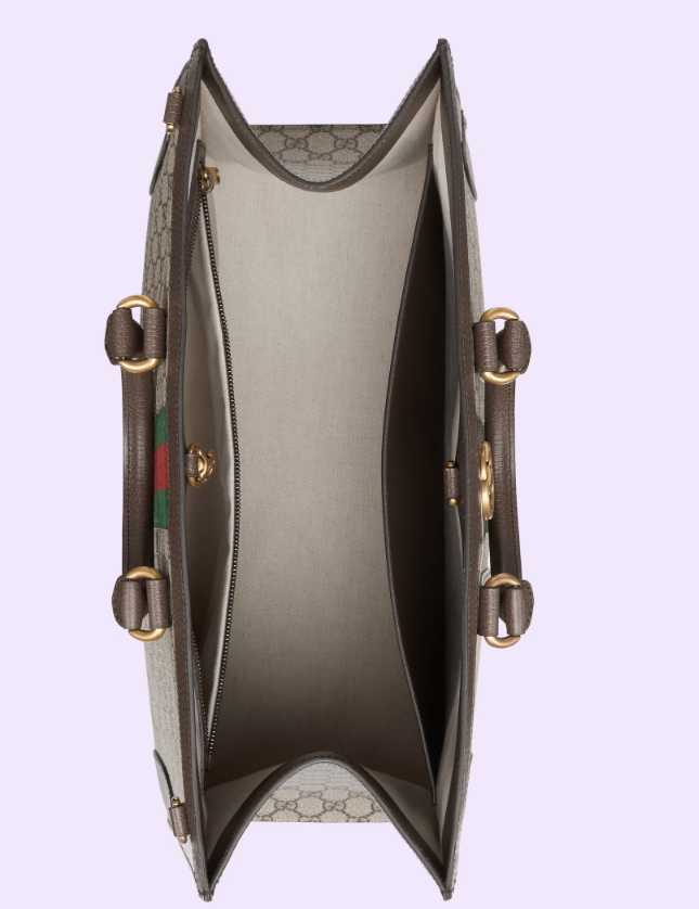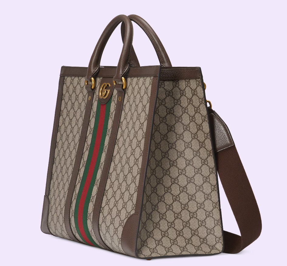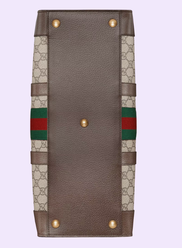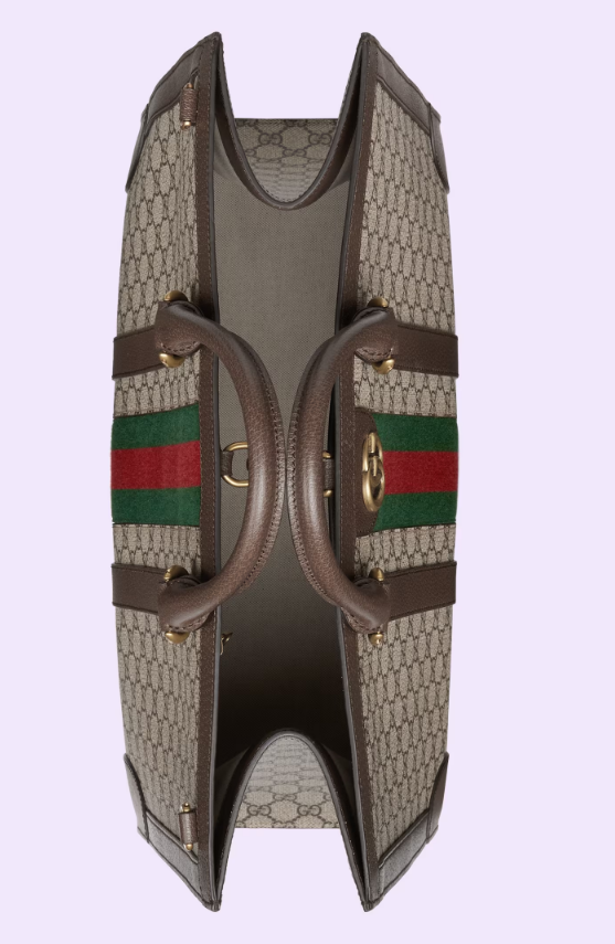 House collections continue the idea that pieces should be timeless and not just in fashion for one season. Guccio Gucci's everlasting monogram continues to enrich new designs with a logo feel. This large Ophidia tote bag is presented in the signature beige and ebony GG Supreme canvas, complete with Double G hardware and green and red Web.