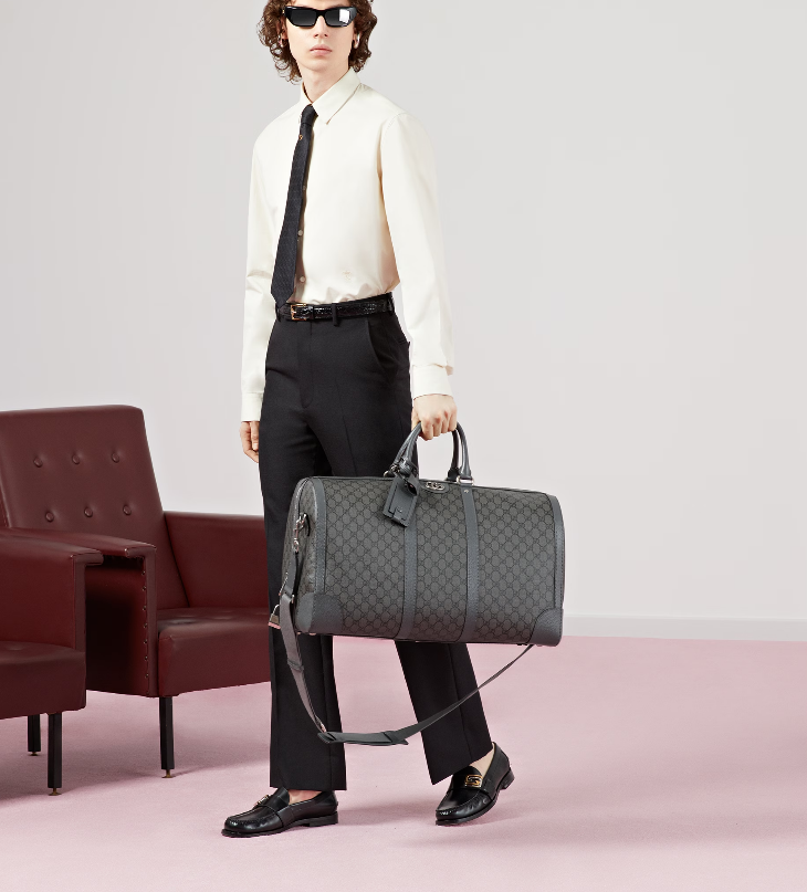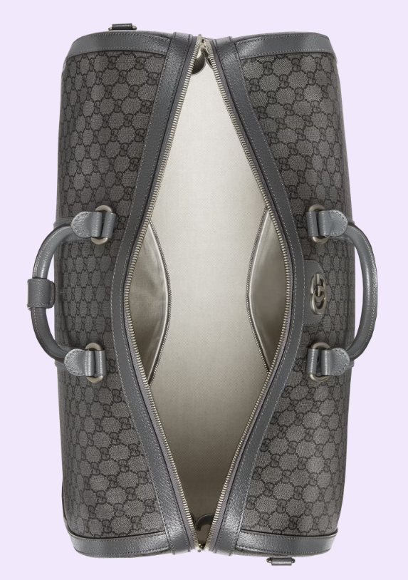 The Gucci colour palette is constantly evolving to include more refined hues. New colourways and combinations result in the reinvention of signature styles with a contemporary feel. This Gucci Savoy duffle bag appears in an elegant grey and black variation of the GG Supreme canvas, complete with a palladium-toned Double G hardware.