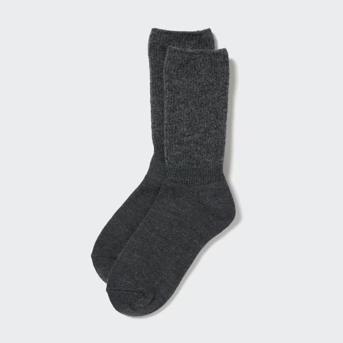 - Combines fluffy ‘Souffle Yarn’ at the leg and cozy ‘HEATTECH’ at the soles.
