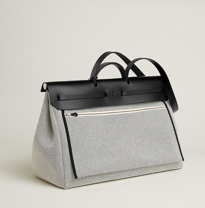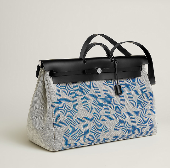 Travel bag in H Plume canvas with "Circuit 24" motif, shoulder strap, collapsible handle, exterior pocket and Clou de Selle closure