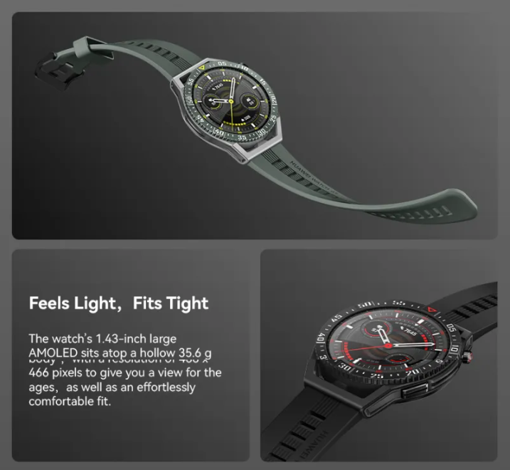 Display Size:1.43 inches; AMOLED color circular screen; full-screen touch operations (including swiping up, down, left, and right, touching, and touching and holding)