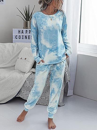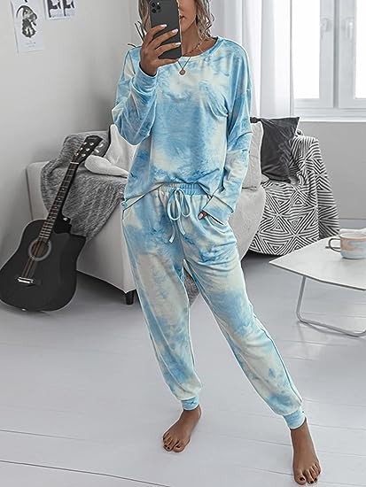 【Features】Womens loungewear set is designed with high waist drawstring pants with pockets and a round neck long sleeve sweatshirt. you can wear a full set or different tops with pants, different pants with our tops. we are offer four vibrant tie-dye print patterns for your choice. Whatever the occasion, there is always one for you.
