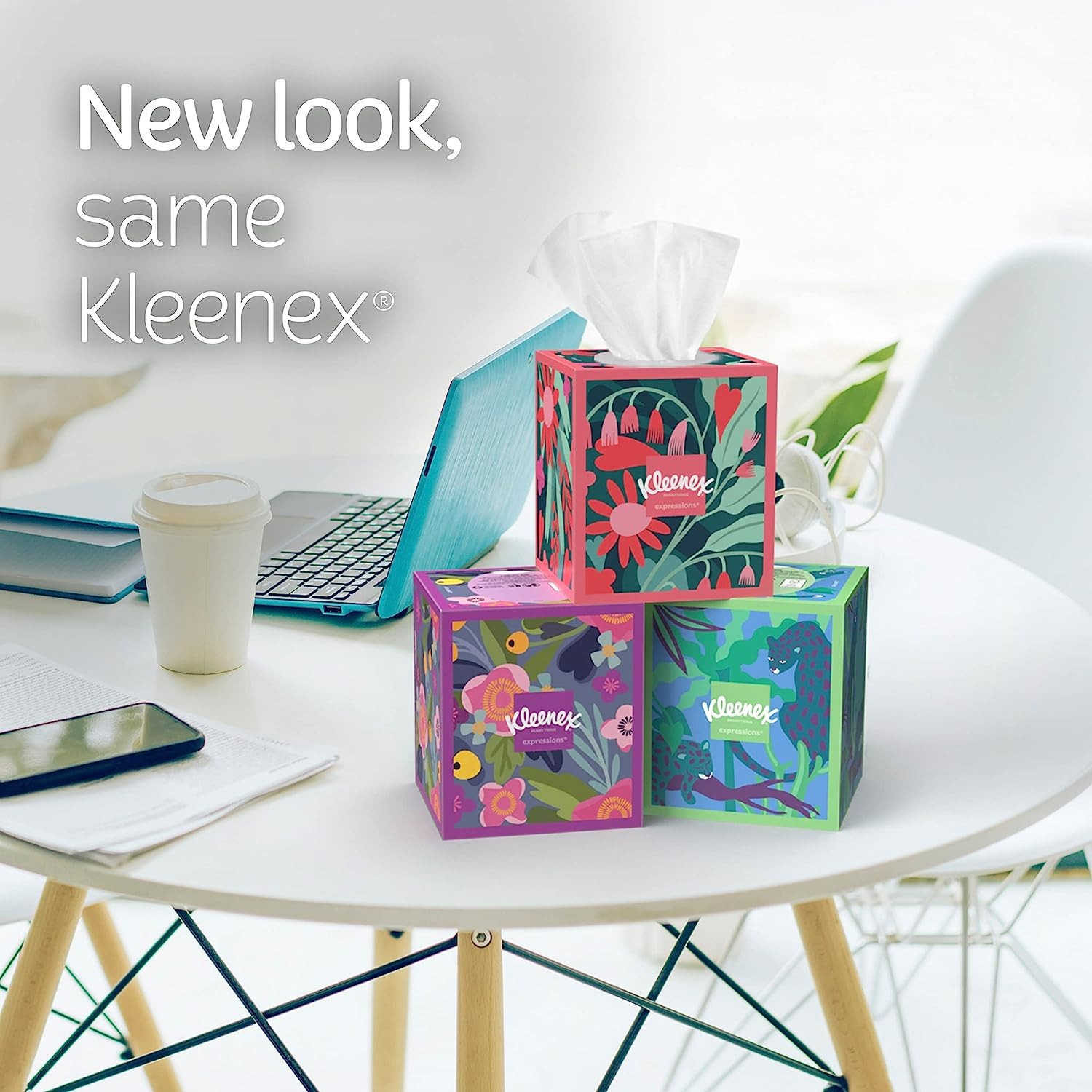 18 CUBE BOXES: Each box of Kleenex Expressions Ultra Soft contains 60 tissues—packaging may vary from what is shown.