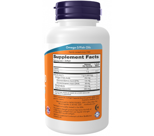 This double strength product has twice the krill oil (1,000 mg per softgel) than our regular strength product (500 mg per softgel).