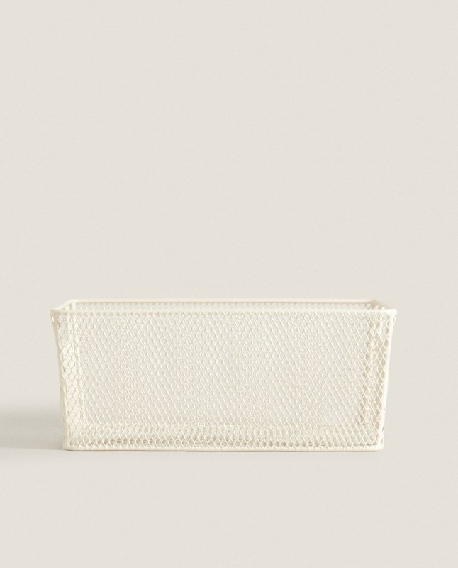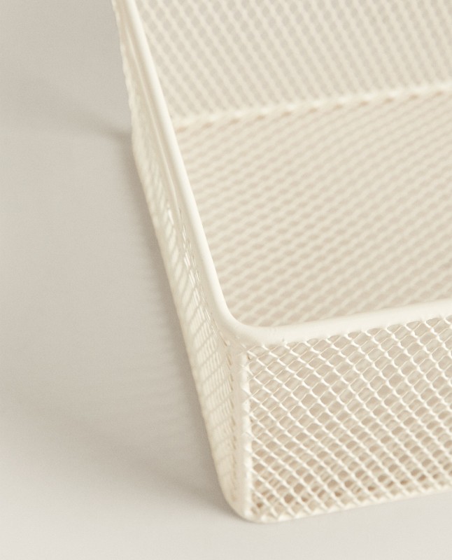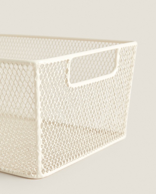 White lacquered basket with handles at the edges.
