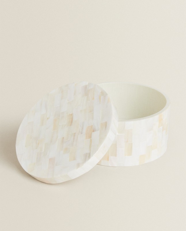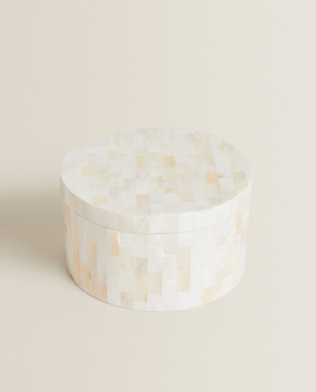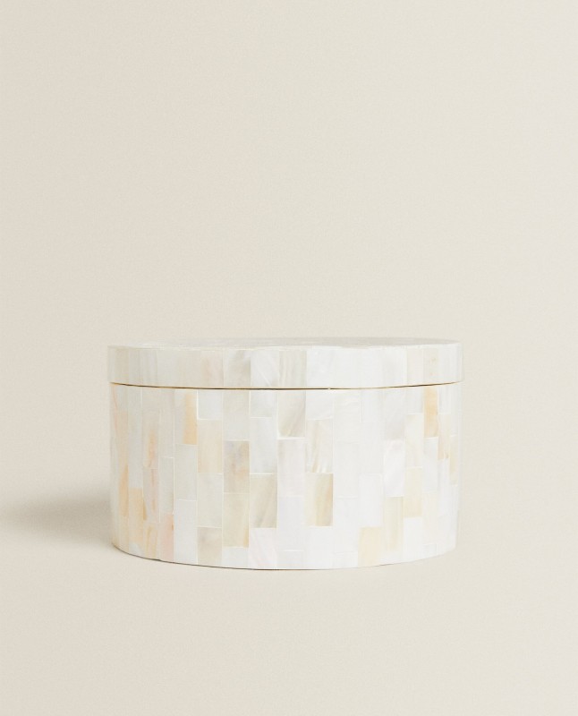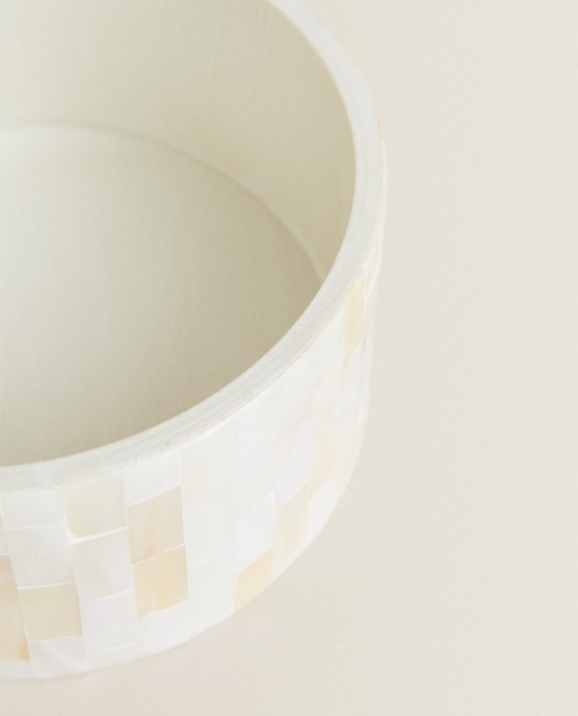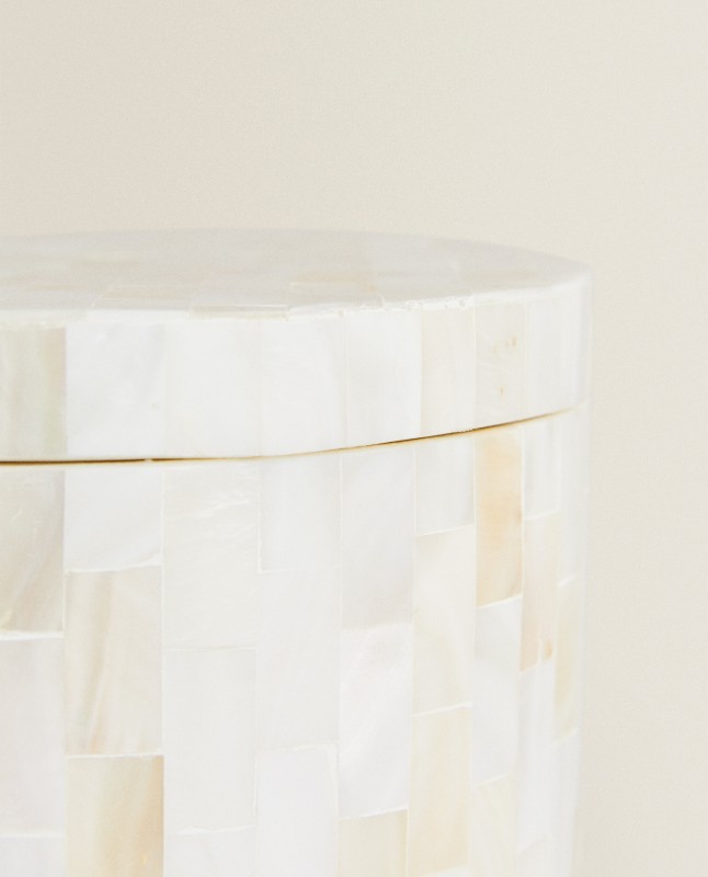 Large mother-of-pearl jar with a round base.