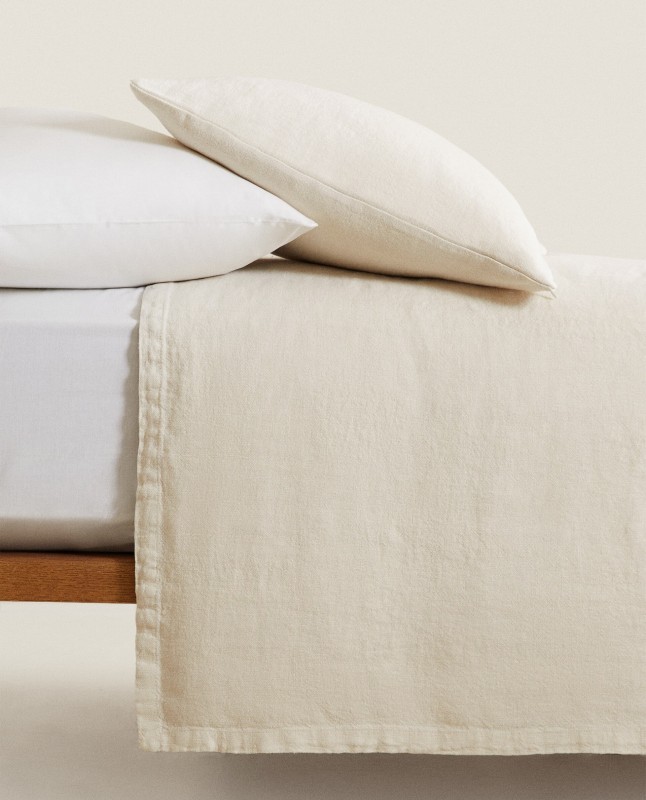 Bedspread made of 100% linen.Solid-color design with straight corners and matching backstitching.