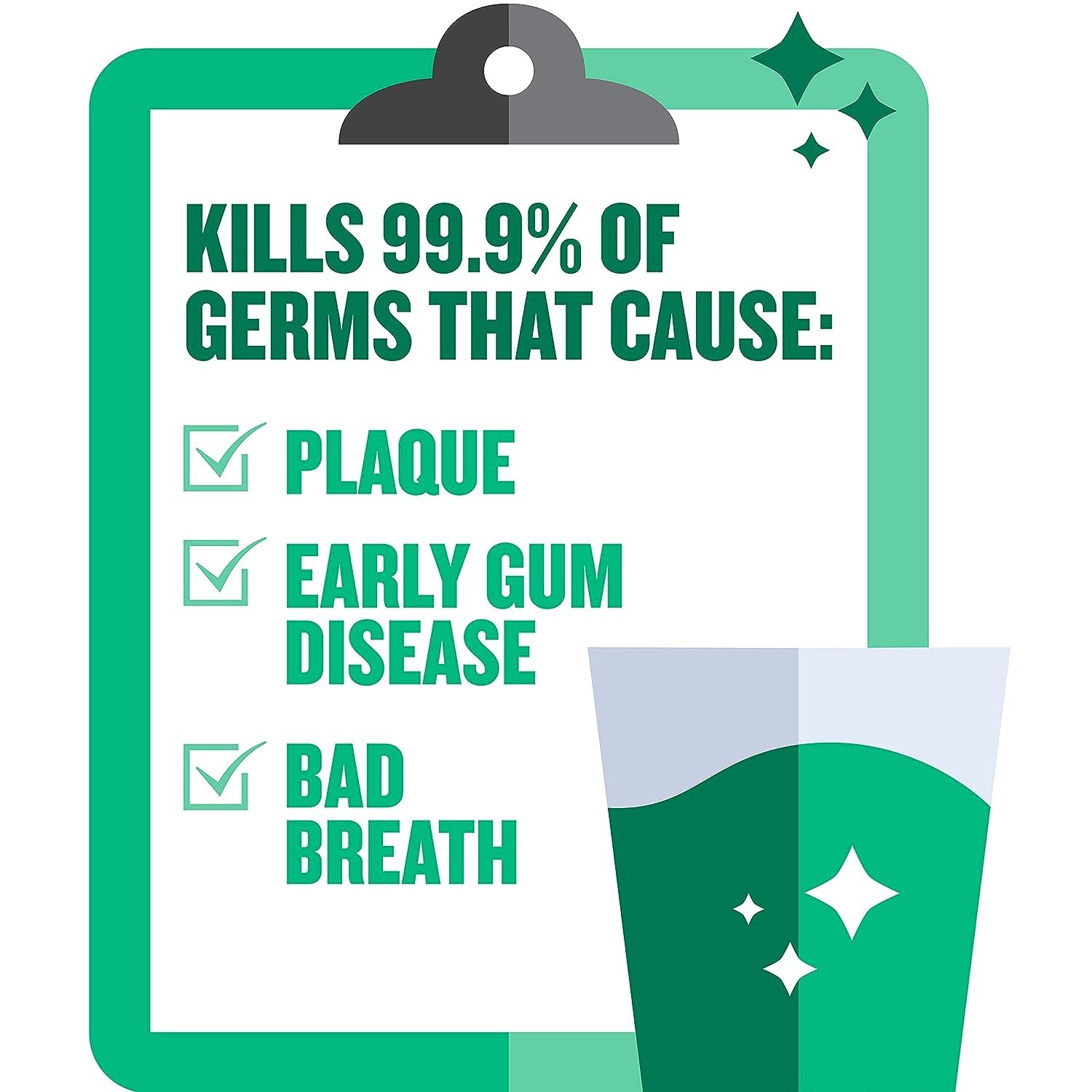 FIGHT PLAQUE AND GINGIVITIS: A germ-killing mouthwash clinically shown to reduce plaque more than brushing and flossing alone by up to 52 percent more and reduce gingivitis by 21 percent more, for a fresh and healthy mouth