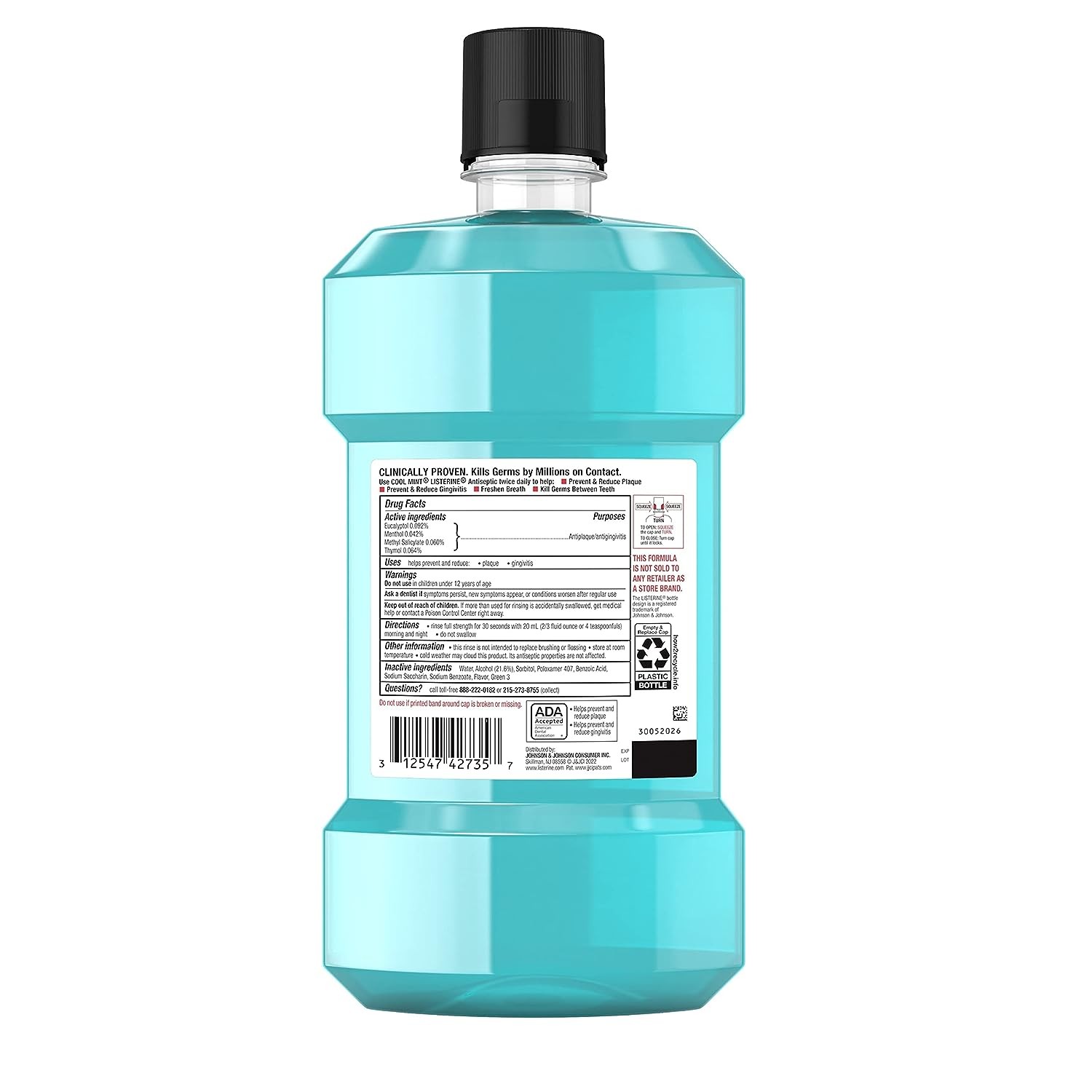 MOUTHWASH: Listerine antiseptic mouthwash kills 99.9% of germs that cause bad breath, plaque, and gingivitis; Leaves your mouth feeling fresh and clean when used as part of your regular oral hygiene routine; Cool Mint flavor.