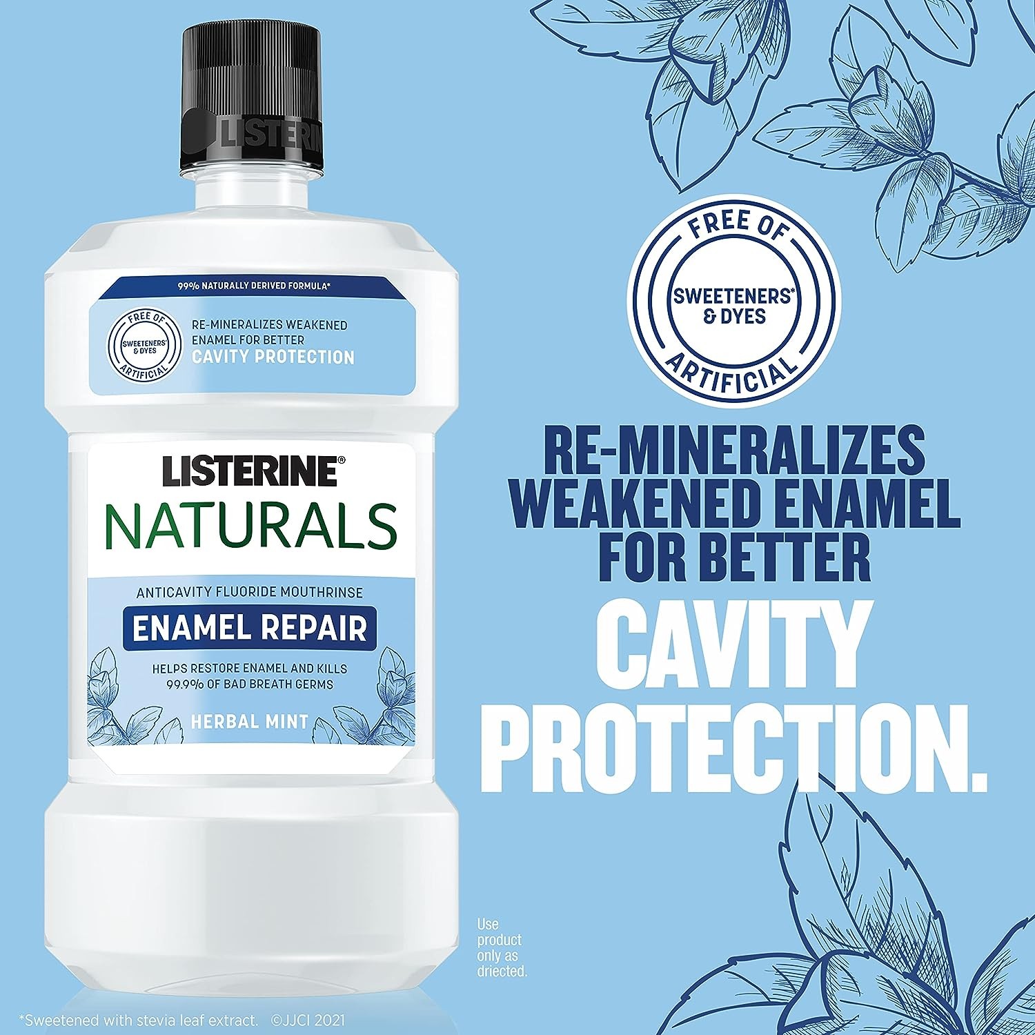 Listerine Naturals Enamel Repair Mouthwash with Mineral Sodium Fluoride, Oral Rinse to Help Restore Tooth Enamel & Kill Bad Breath Germs, 99% Naturally Derived, Herbal Mint, 500 mL