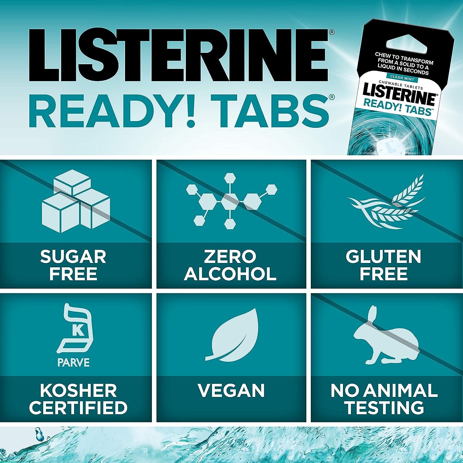 9 Packs of 8-count each of Listerine Ready! Tabs chewable tablets in refreshing clean Mint flavor provide a revolutionary way to unleash the clean feeling of Listerine on-the-go - anytime, anywhere