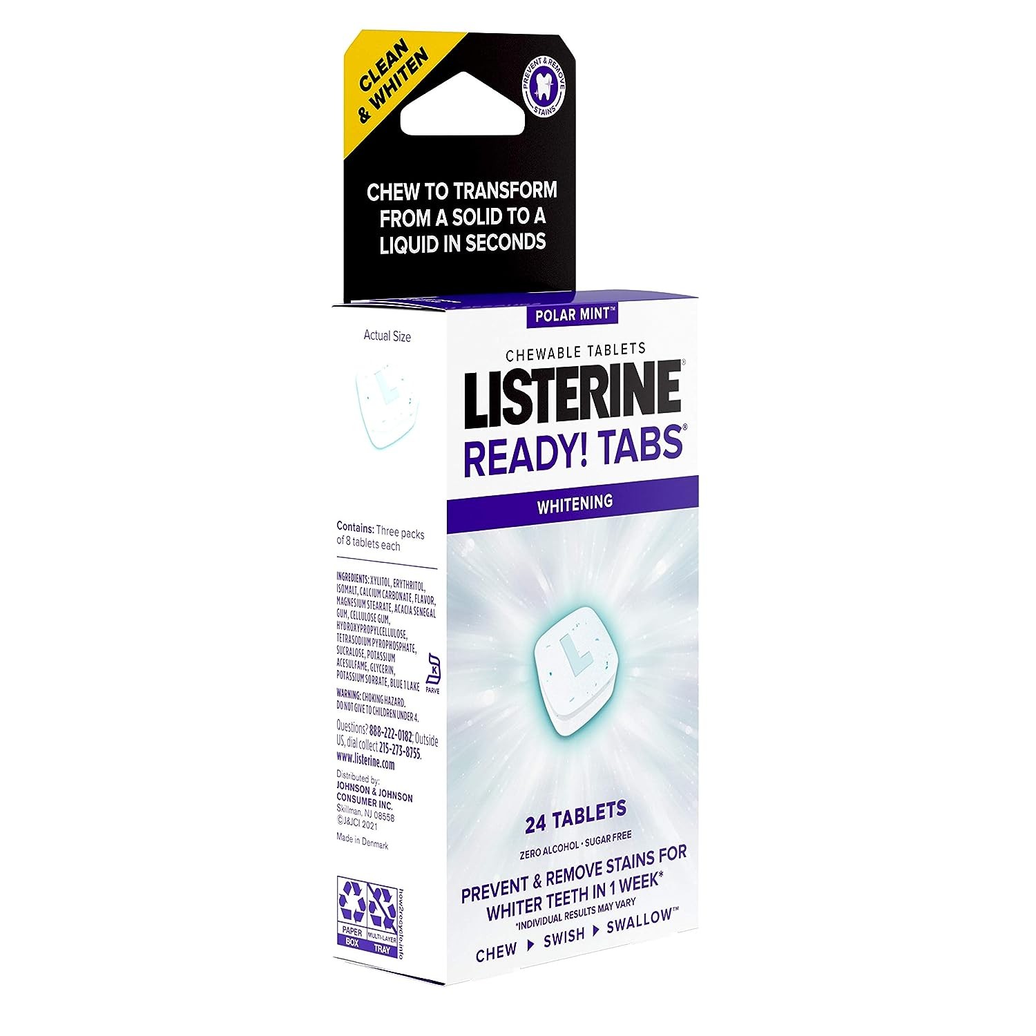 24-count of Listerine Ready! Tabs Whitening Chewable Mint Tablets in refreshing Polar Mint flavor provide a revolutionary way to unleash the clean feeling of Listerine on-the-go while defending teeth from stains before they can set in