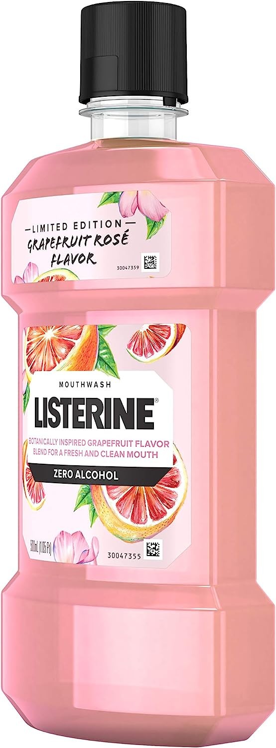 500-milliliters of Listerine Zero Alcohol Mouthwash in a Limited Edition Grapefruit Rose flavor to kill 99% of bad breath germs