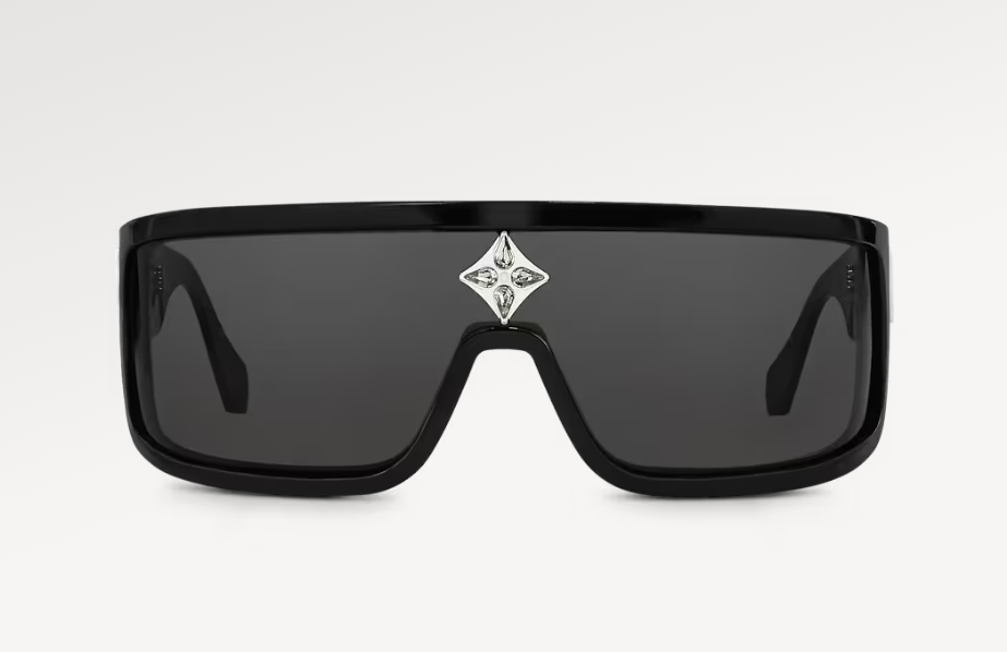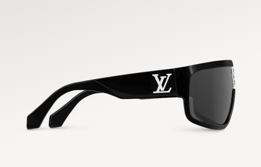 The Cyclone Sport Mask sunglasses are an athletic update on the Cyclone style. The design features a wraparound mask shape that makes a bold statement. LV Initials are embedded at the hinges, while a crystal Monogram Flower nestled above the bridge gives the accessory a luxurious finish.