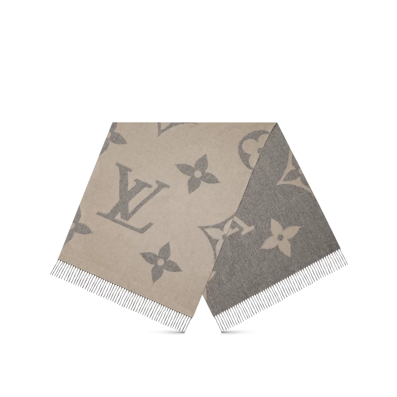 The MNG Giant scarf pairs a large-scale house signature with an oversized style for a maximalist look. The iconic Monogram pattern makes up the tone-on-tone design, which is inverted on the back in contrasting colors. Made from pure cashmere, the scarf is soft to the touch and will provide warmth during the winter months.