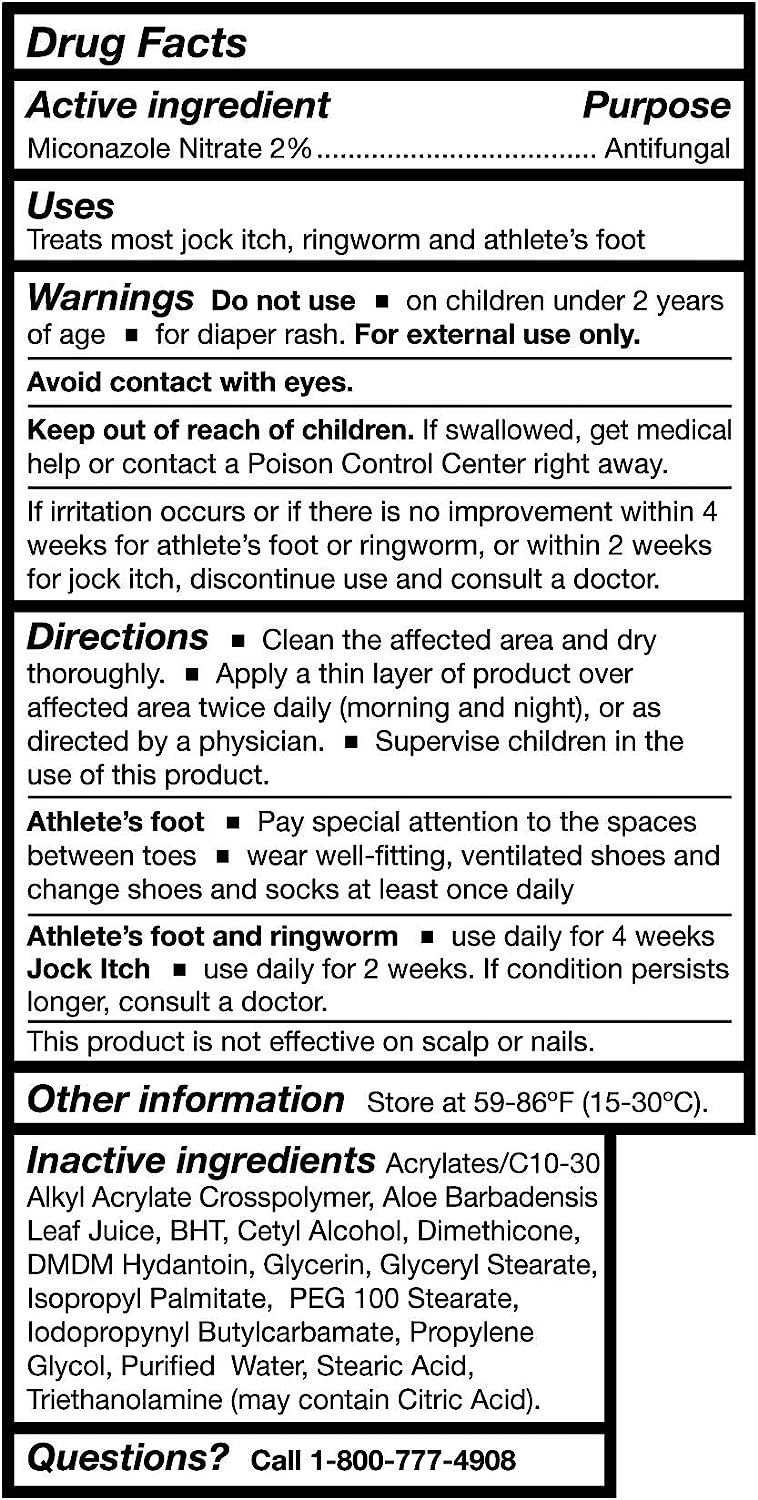 Formula has 2% miconazole nitrate to help with healing of jock itch, ringworm and athlete's feet