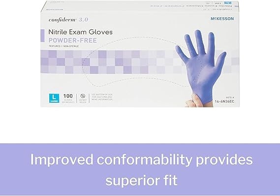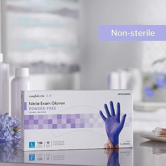 These dark blue McKesson Confiderm 3.0 nitrile exam gloves are a great choice for various medical, healthcare, and cleaning needs