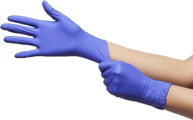 Powder-free nitrile exam gloves are wearable on left or right hand