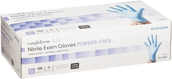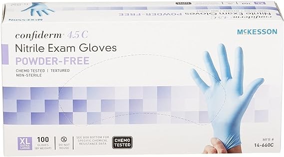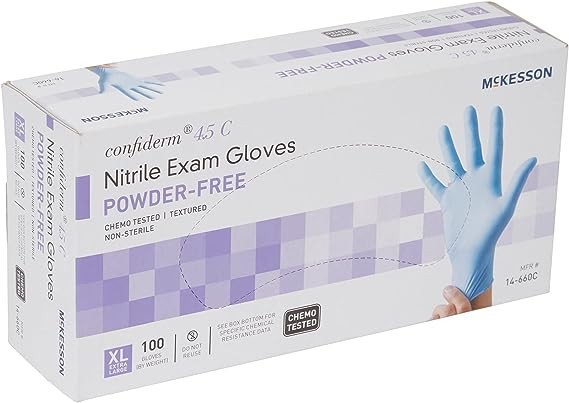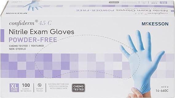 These light blue McKesson Confiderm 4.5C nitrile exam gloves are a great choice for various medical, healthcare, and cleaning needs