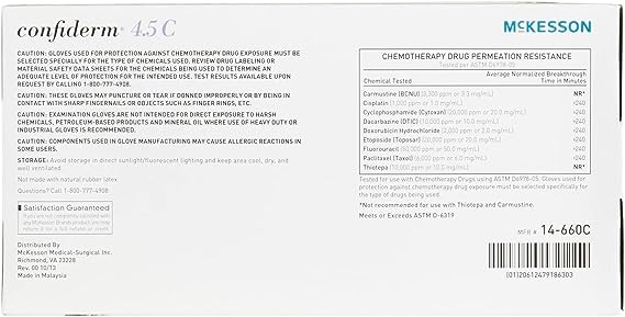 Tested with chemotherapy drugs; gloves used for protection against chemo drug exposure must be selected specifically for type of drugs used; review safety data sheets for adequate level of protection