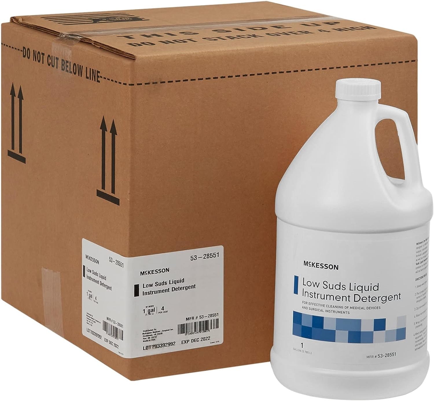 McKesson Low Suds Liquid Instrument Detergent, Clean Medical Devices and Surgical Instruments, 1 gal, 1 Count, 4 Packs, 4 Total