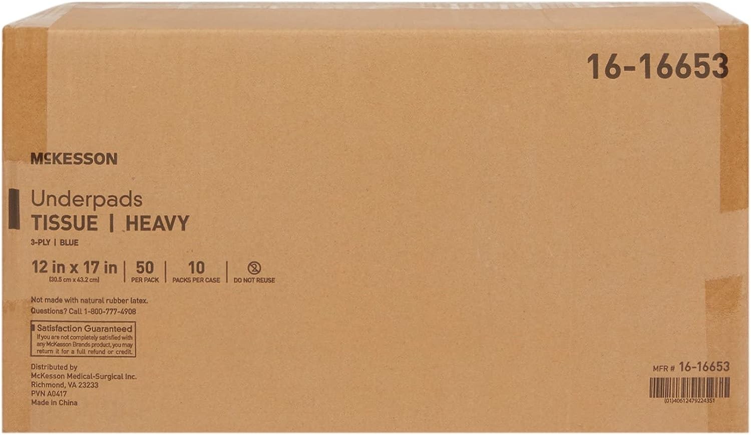 McKesson Medical Underpads, Heavy Absorbency 3-Ply Tissue, 12" x 17", 500 Count