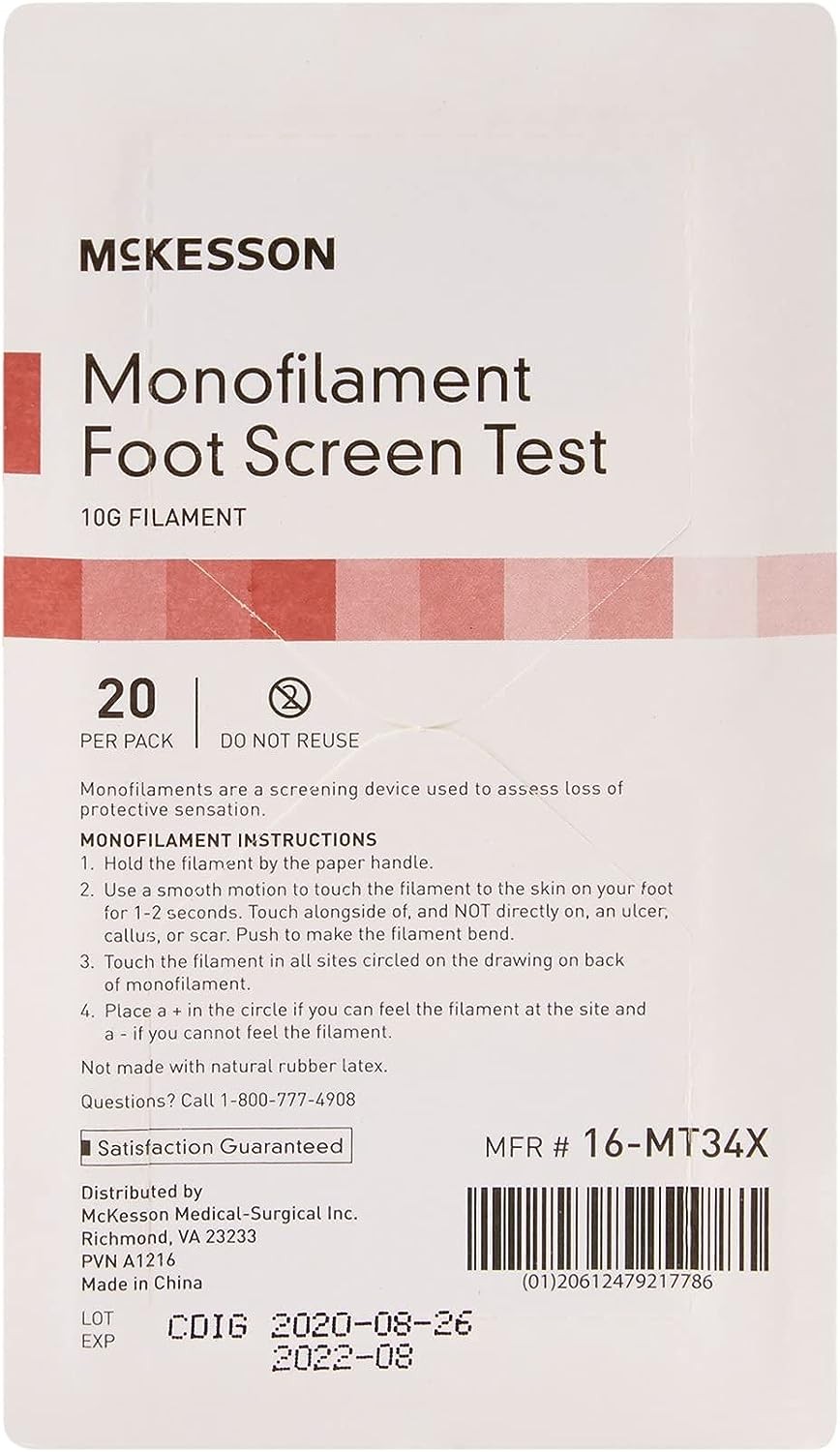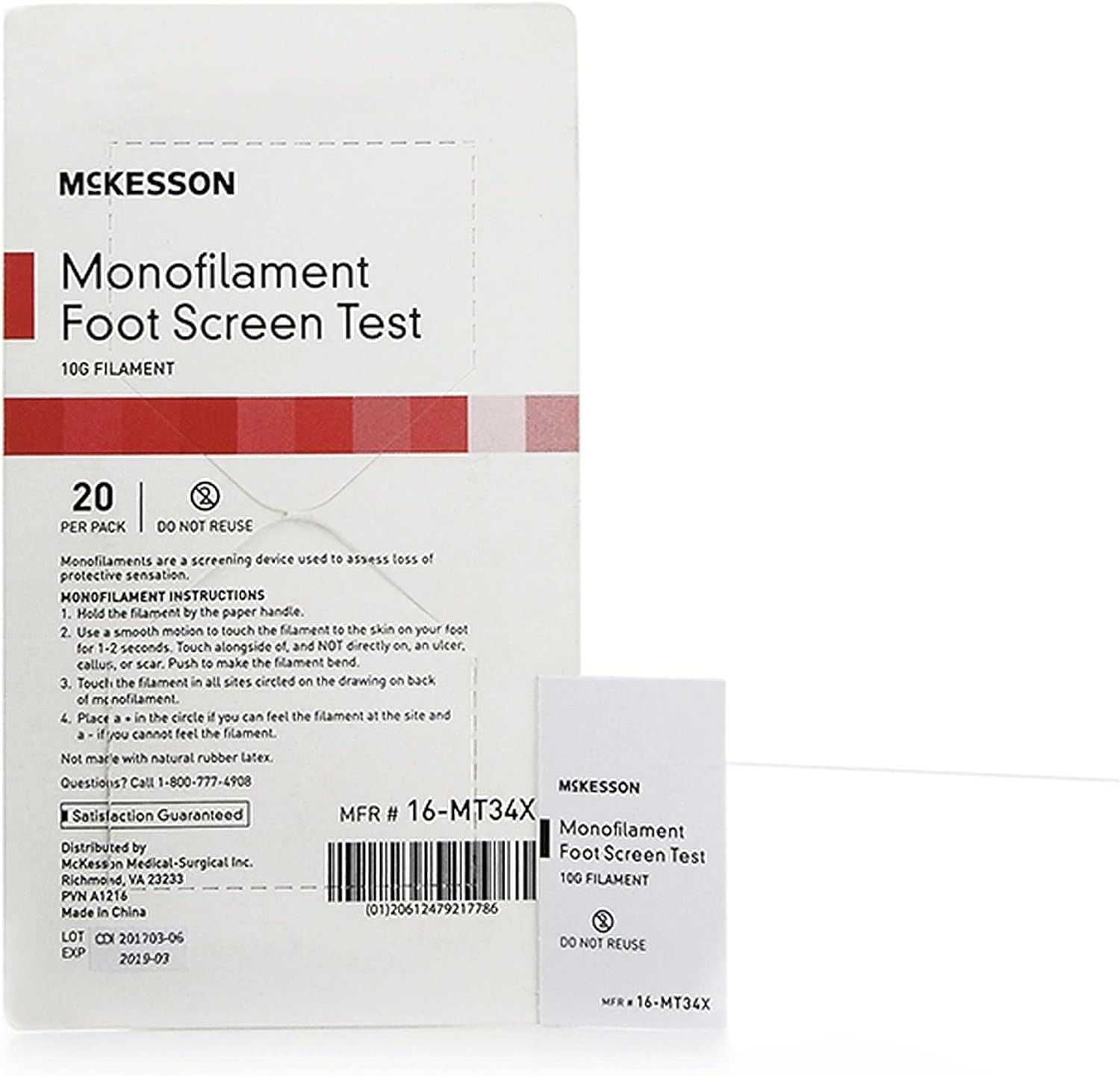 McKesson Monofilament Foot Screen Test, Neuropathy Screening Test Diabetic, 10 g, 20 Count