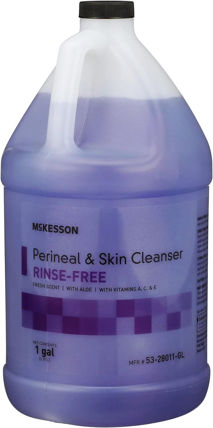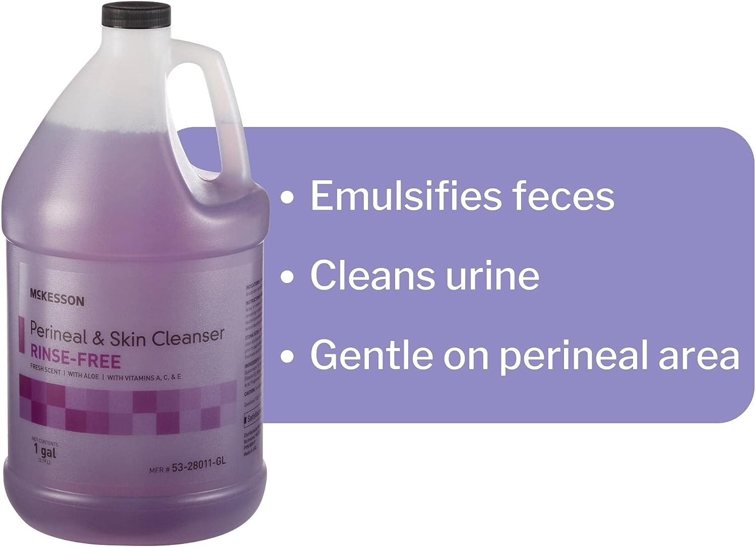 Rinse-free cleanser: Aids in emulsifying feces and cleansing urine for infirm individuals; intended for use in reducing perineal dermatitis such as skin rashes or bumps