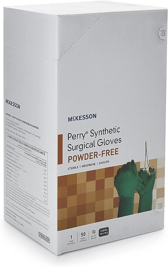 McKesson Perry Performance Plus Synthetic Surgical Gloves, Sterile, Powder-Free, Dark Green, Size 7.5, 50 Count, 4 Boxes, 200 Total