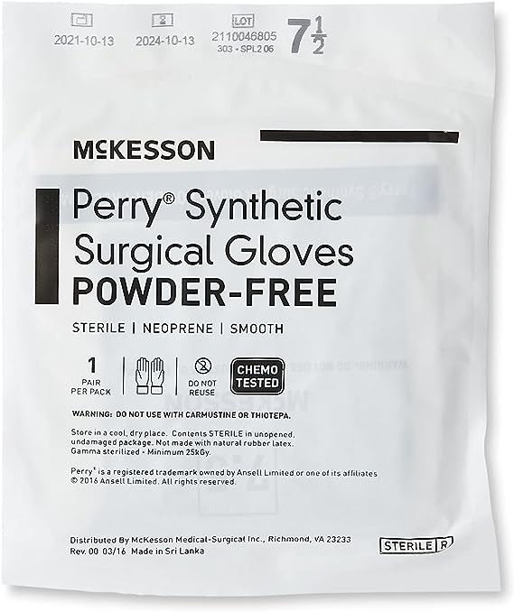 • Size 7 1/2 surgical gloves have a length of 12.2 inches and a fingertip thickness of 7.9 mil; beaded cuff design and an anti-slip finish to offer a smooth feel