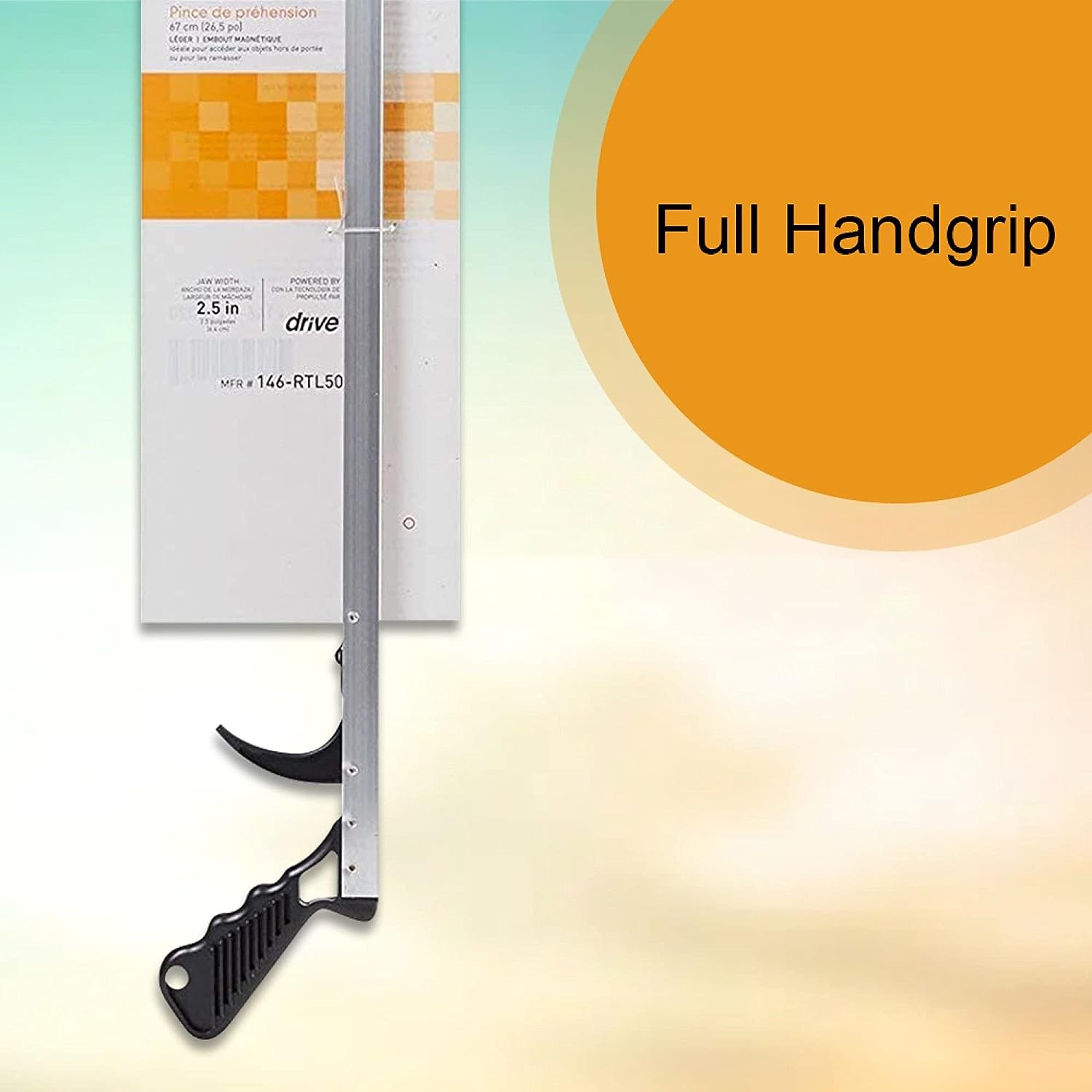• Reaching aid is useful for extending reach by over 2 feet when picking up dropped items or retrieving items from areas such as shelves or cabinets; reduces the need for bending and stretching