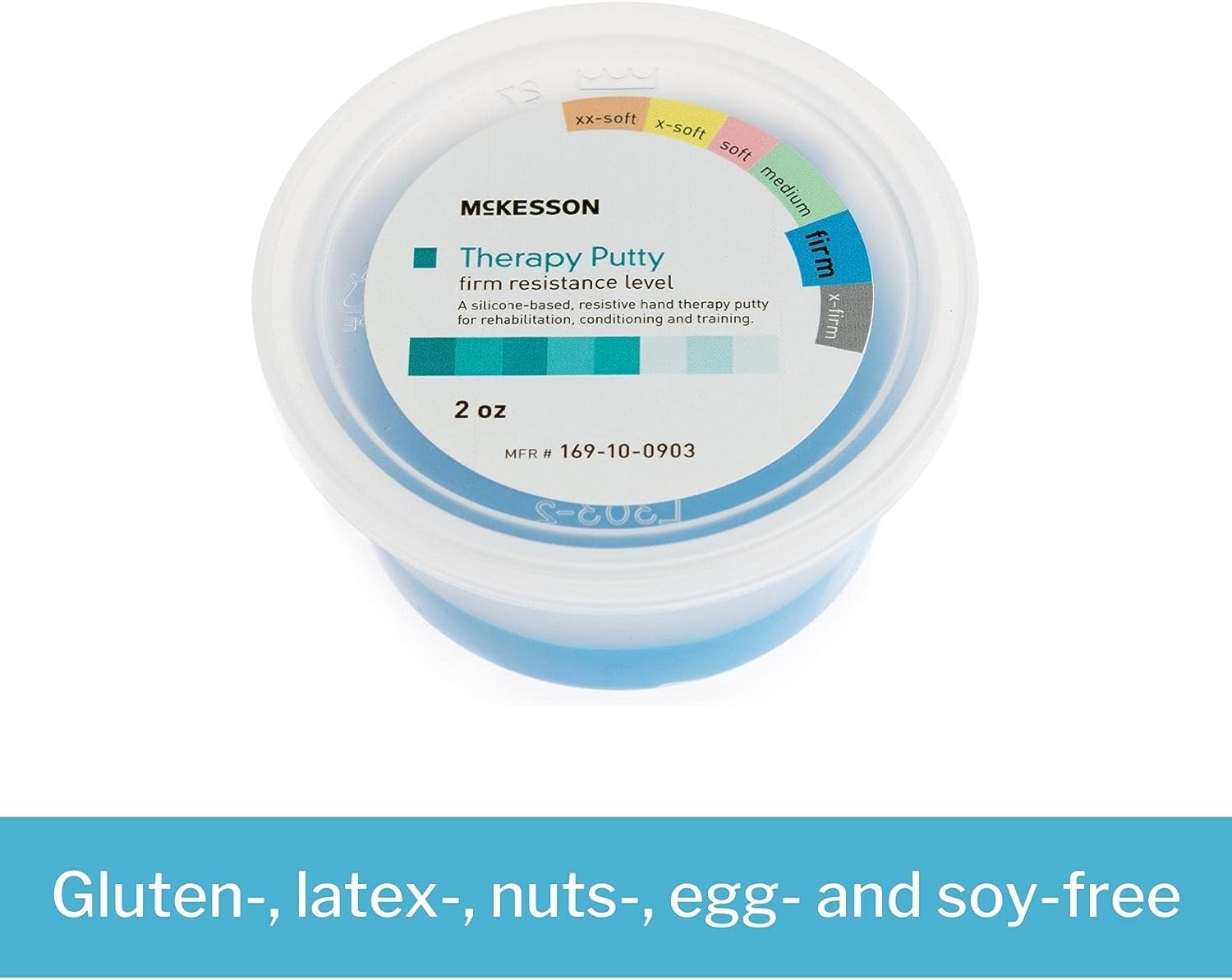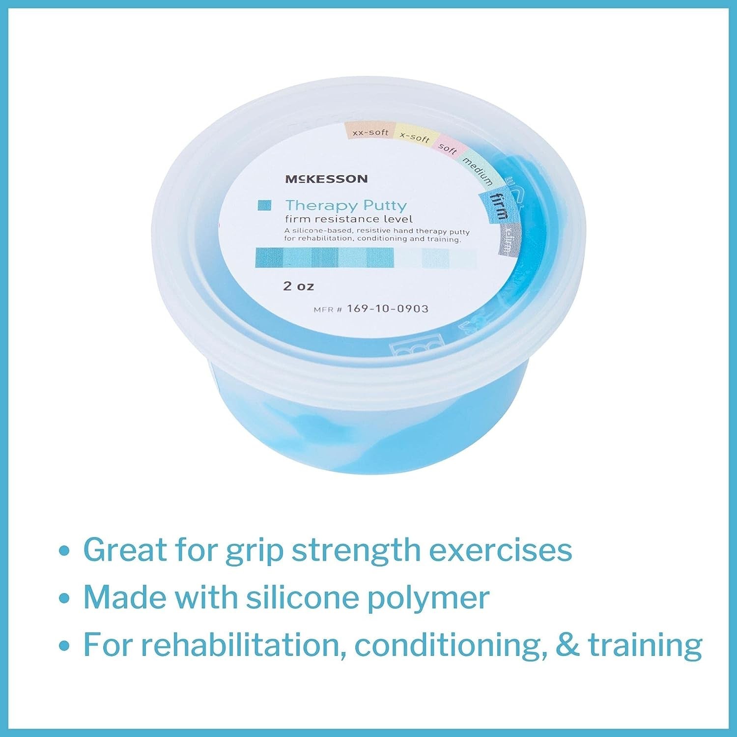 McKesson physical therapy putty helps users employ grip-strength exercises for an injured hand, finger, or thumb. Caregivers and physical therapists can incorporate this putty into handgrip exercises during rehabilitation. Packaged in a small, handy container, this elastic putty can be used as a portable exercise medium. Made of high-quality silicone polymer, the putty comes in various colors and resistance levels. You can choose from yellow for extra-soft resistance, red for soft resistance, green for medium resistance, and blue for firm resistance. Use therapy putty for exercises such as the hand flexion, finger spread, thumb press, and adduction. This unscented, non-toxic therapy putty contains no gluten, soy, egg, or nuts and is not made with natural rubber latex.